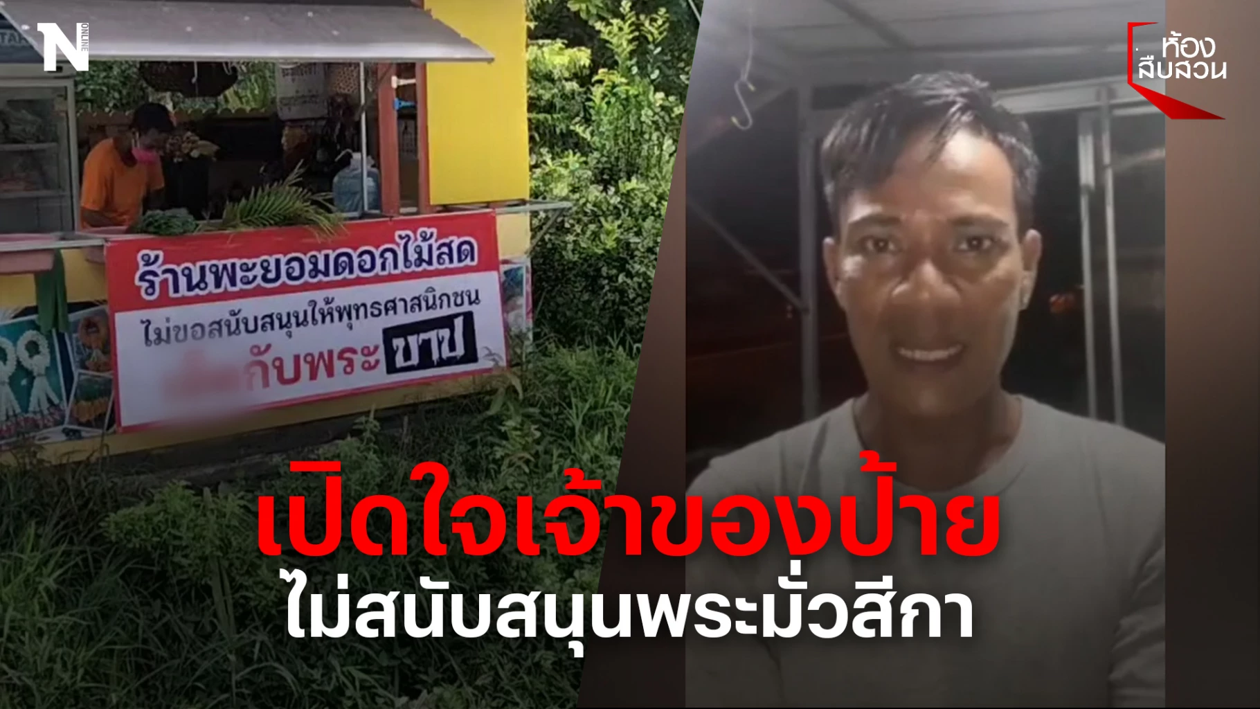 กรณีโลกโซเชียลมีการเผยแพร่ภาพร้านขายดอกไม้แห่งหนึ่ง ใน อ.ร่อนพิบูลย์ มีการปิดป้ายหน้าร้าน พร้อมระบุข้อความ " ร้านพะยอมดอกไม้สด ไม่ขอสนับสนุนให้พุทธศาสนิกชน เย็ดกับพระ บาป " จนมีการแชร์ต่อพร้อมแสดงความคิดเห็นอย่างกว้างขวาง