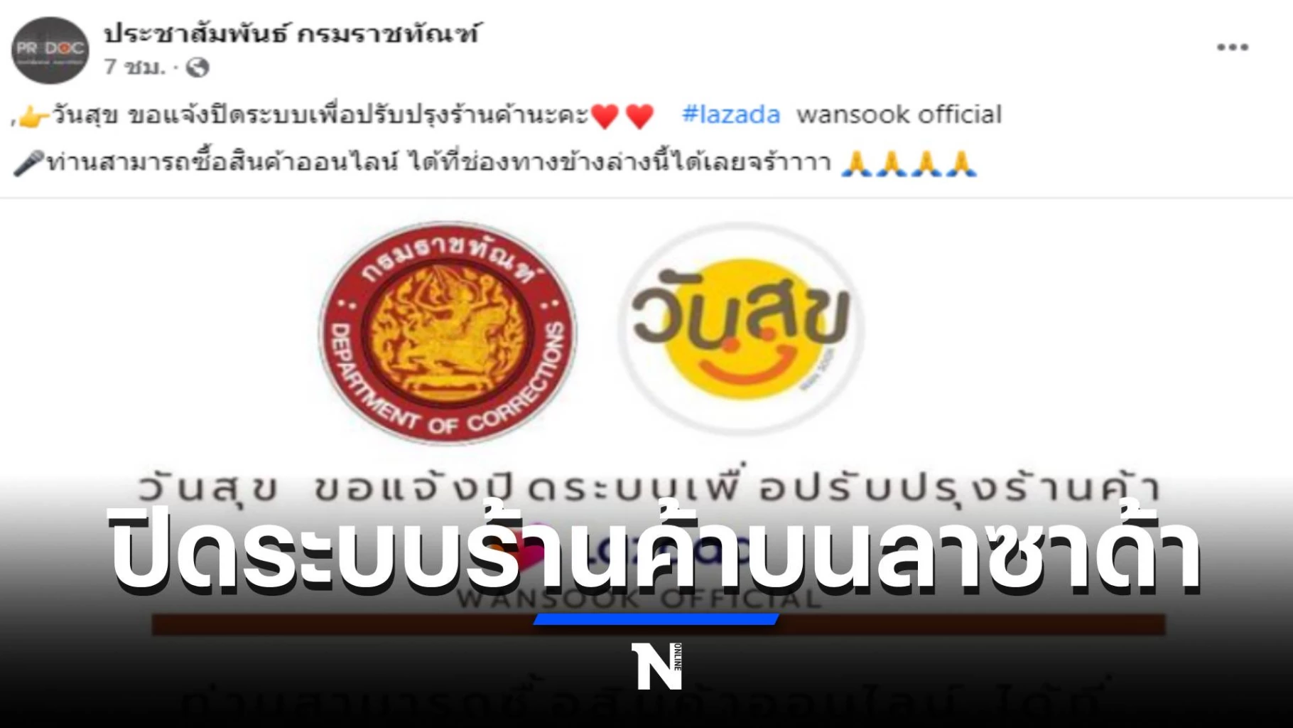 เพจเฟซบุ๊ก “ประชาสัมพันธ์ กรมราชทัณฑ์” โพสต์ข้อความแจ้งลูกค้าว่า วันสุข (WANSOOK) ซึ่งเป็นร้านค้าจำหน่ายผลิตภัณฑ์จากผู้ต้องขังของกลุ่มงานส่งเสริมทักษะการทำงาน กองพัฒนาพฤตินิสัย กรมราชทัณฑ์ กระทรวงยุติธรรม โดยประกาศว่า “วันสุข ขอแจ้งปิดระบบเพื่อปรับปรุงร้านค้าลาซาด้า WANSOOK OFFICIAL ท่านสามารถซื้อสินค้าออนไลน์ได้ที่ช้อปปี้ เฟซบุ๊ก และไลน์ ขออภัยในความไม่สะดวกมา ณ ที่นี้”