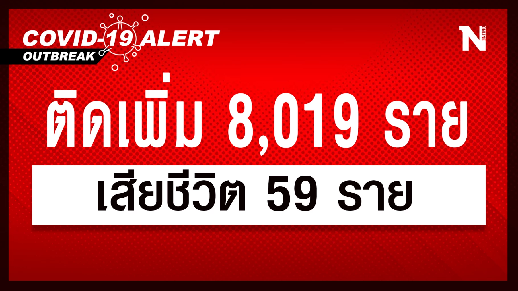 สถานการณ์โควิด-19 วันนี้ ยอดผู้ติดเชื้อรายใหม่พุ่ง 8,019 เสียชีวิต 59 ราย