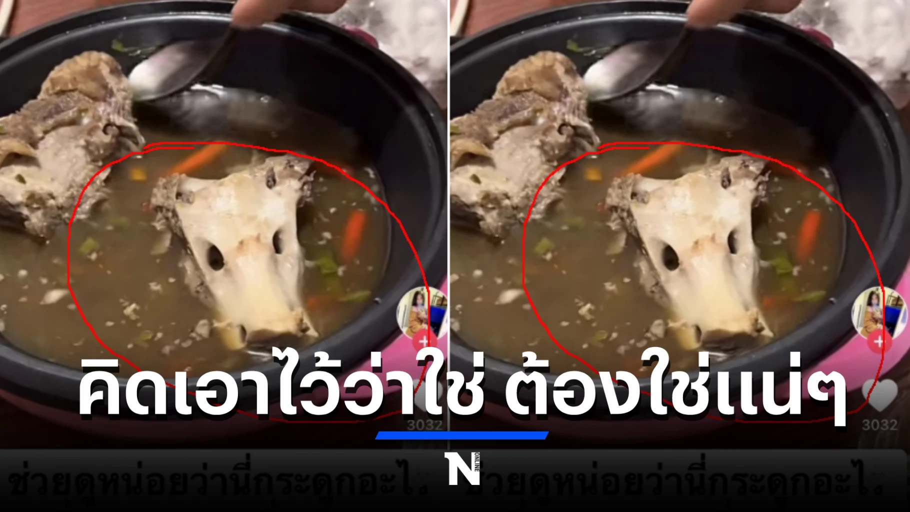 แต่เมื่อน้ำ "ต้มเล้ง" เริ่มลดลง จู่ ๆ เธอก็เริ่มสังเกตุกระดูกในน้ำซุปที่กินกันนั้นแปลก ๆ เหมือนกำลังจ่องหน้าคนกิน เธอจึงโพสต์คลิปถามชาวเน็ตโดยระบุข้อความว่า ช่วยดูหน่อยว่านี่กระดูกอะไร แทะหมดเพิ่งเห็น