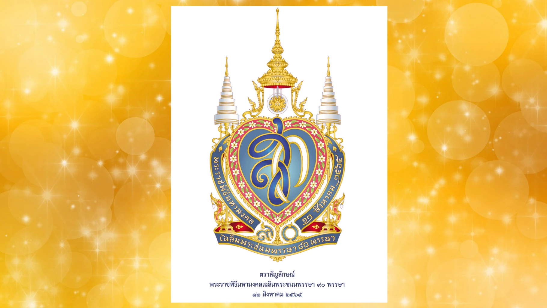 2. มีตราสัญลักษณ์พระราชพิธีมหามงคลเฉลิมพระชนมพรรษา ๙๐ พรรษา ๑๒ สิงหาคม ๒๕๖๕ ซึ่งกรมศิลปากรดำเนินการออกแบบตราสัญลักษณ์ พร้อมความหมาย โดยผู้ประสงค์ขออนุญาตใช้ตราสัญลักษณ์ฯ จะต้องเป็นนิติบุคคล หน่วยงานของรัฐ ภาคเอกชน มูลนิธิ สมาคม ชมรม หรือ บริษัท ห้าง ร้าน ซึ่งการนำตราสัญลักษณ์ฯ เพื่อประดับหรือประดิษฐานบนสิ่งของใด ๆ จะพิจารณาถึงความเหมาะสมในเรื่องรูปแบบ วัตถุประสงค์ เจตนารมณ์ และจะต้องมีแผนดำเนินงานในระยะเวลาขอบเขตการจัดงานเฉลิมพระเกียรติฯ ระหว่างวันที่ 1 มกราคม 2565 ถึงวันที่ 31 ธันวาคม 2565 โดยสามารถยื่นคำขอระหว่างวันที่ 1 พฤษภาคม 2565 ถึงวันที่ 31 ตุลาคม 2565 และส่งคำขออนุญาตไปยังคณะกรรมการฝ่ายกลั่นกรองการขอใช้ตราสัญลักษณ์ การจัดงานเฉลิมพระเกียรติฯ สำนักงานปลัดสำนักนายกรัฐมนตรี ทำเนียบรัฐบาล สอบถามรายละเอียดได้ที่หมายเลขโทรศัพท์ 0 2283 4789 - 91 หรือดูรายละเอียดได้ที่เว็บไซต์ www.opm.go.th