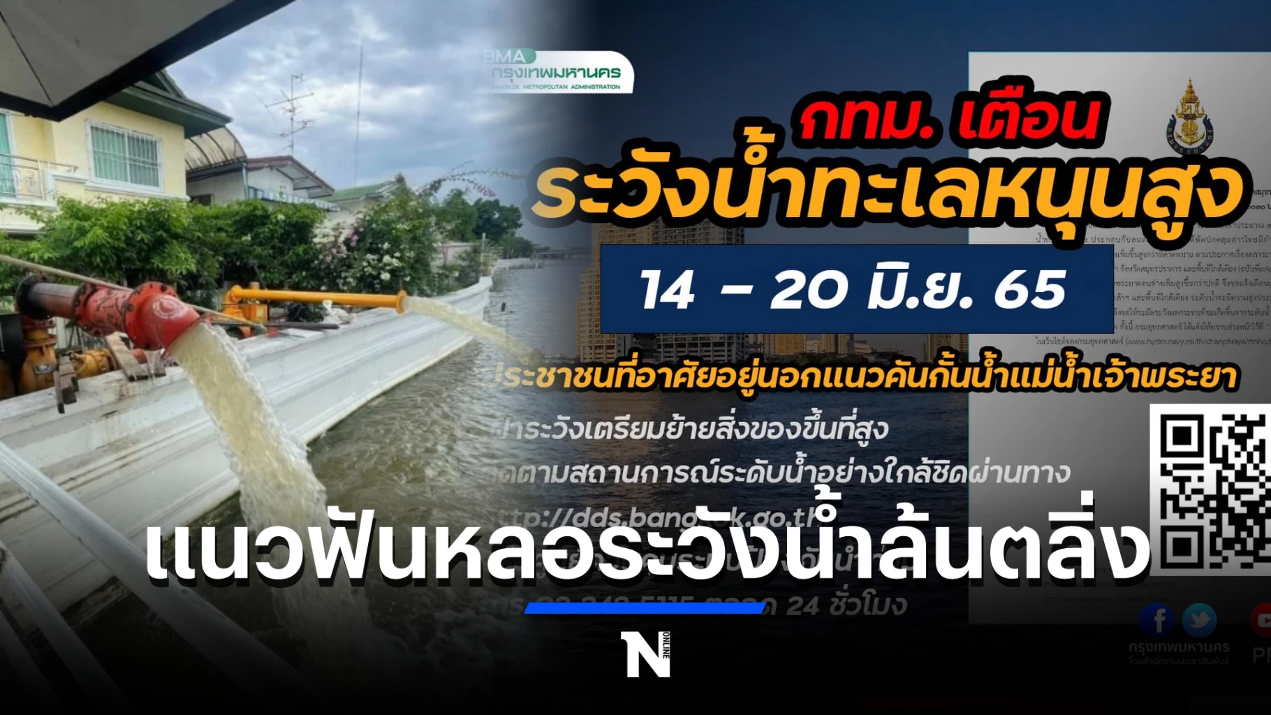 วันนี้ (15 มิ.ย.) นายขจิต ชัชวานิชย์ ปลัดกรุงเทพมหานคร แจ้งว่า ตามที่กองอำนวยการป้องกันและบรรเทาสาธารณภัยกลาง (กอปภ.ก.) โดยกรมป้องกันและบรรเทาสาธารณภัย ได้รับแจ้งจากกองอำนวยการน้ำแห่งชาติ (กอนช.) ระบุจากการติดตามสถานการณ์น้ำทะเลหนุนสูงบริเวณแม่น้ำเจ้าพระยาและตามประกาศกรมอุทกศาสตร์ ฉบับที่ 10/2565 วันที่ 13 มิ.ย. 65 พบสภาวะระดับน้ำในแม่น้ำเจ้าพระยาบริเวณป้อมพระจุลจอมเกล้า จ.สมุทรปราการ และพื้นที่ใกล้เคียง ในระหว่างวันที่ 14 – 20 มิ.ย.65 เวลาประมาณ 18.00 - 00.30 น. เป็นช่วงที่น้ำทะเลหนุนสูง