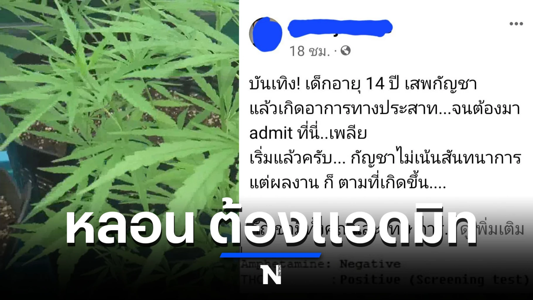 17 มิ.ย.2565 มีผู้ใช้เฟสบุ๊ครายหนึ่ง เป็นกุมารแพทย์เชี่ยวชาญโรคระบบหายใจ โรงพยาบาลใหญ่ประจำจังหวัดนครราชสีมา โพสต์ข้อความลงโซเชียล ระบุว่า“บันเทิง! เด็กอายุ14ปี เสพกัญชา แล้วเกิดอาการทางประสาท…จนต้องมาadmitที่นี่.เพลีย เริ่มแล้วครับ… กัญชาไม่เน้นสันทนาการ แต่ผลงาน ก็ ตามที่เกิดขึ้น กัญชามีทั้งคุณและโทษ การจะเอาอะไรที่มีทั้งคุณและโทษ ออกมาใช้ มันต้องรัดกุมจริงๆ…. ฝากรัฐไม่ได้ ก็ฝากพ่อแม่ด้วยนะครับ เดี๋ยวคงมาเรื่อยๆ โชคดีที่ไม่เป็นอะไรมาก. ถ้าไม่ตีแผ่ ก็จะบอกว่าไม่มี…. แต่พอตีแผ่เดี๋ยวก็โทรมาอีก”