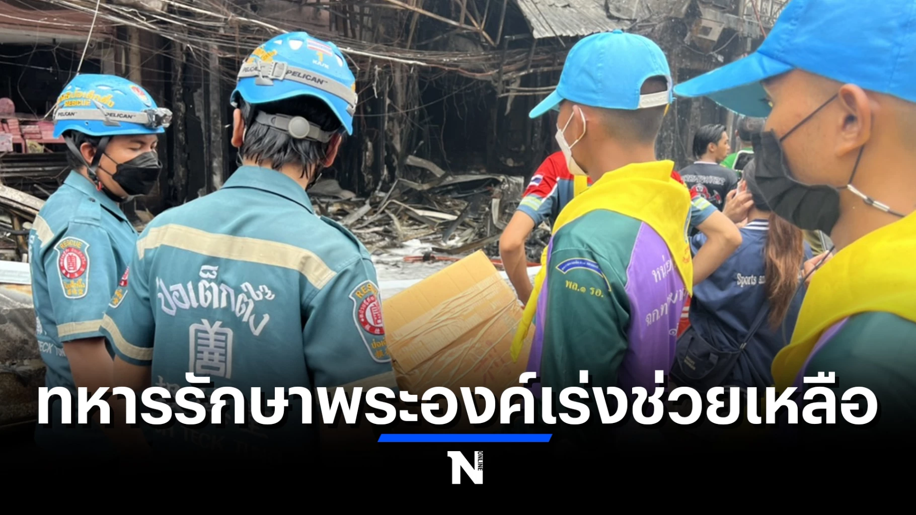 วันเดียวกัน "ทหารรักษาพระองค์" เข้าช่วยเจ้าหน้าที่ควบคุมเพลิง ช่วยชาวบ้านขนย้ายสิ่งของ จากเหตุเพลิงไหม้สำเพ็ง พร้อมแจกอาหาร-น้ำ-ทำความสะอาดพื้นที่ หลังเพลิงสงบ