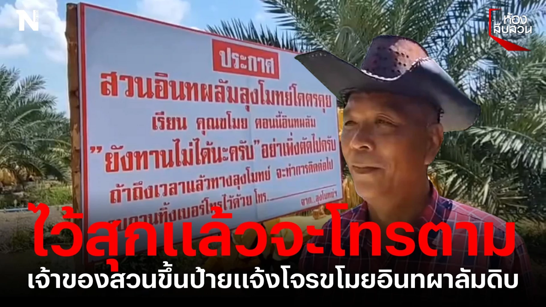 ไว้สุกแล้วจะโทรตาม เจ้าของสวนขึ้นป้ายแจ้งโจรขโมยอินทผาลัมดิบ