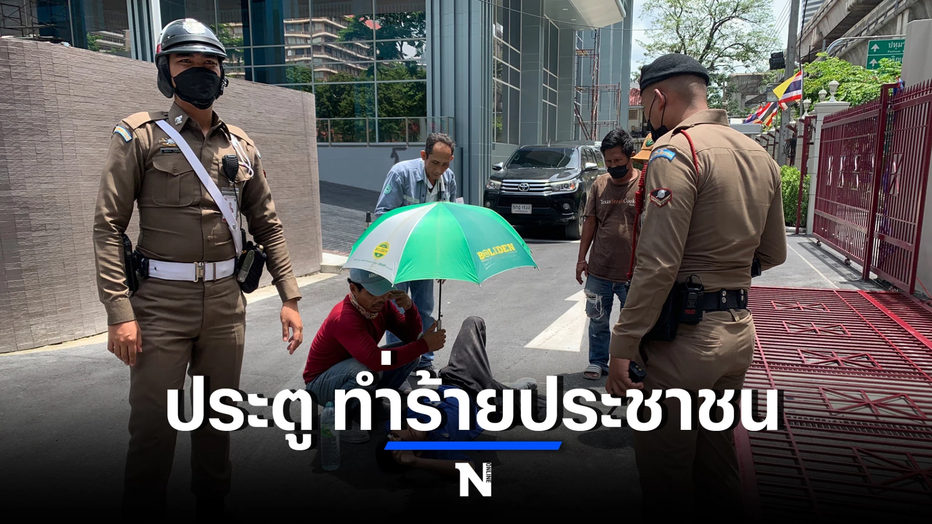 โดยที่เกิดเหตุบริเวณฝั่งประตูทางเข้าติดถนนพระรามที่1 พบรั้วเหล็กล้มทับ นายชิษณุชา แก้วแก่น อายุ 19 ปี พนักงานเก็บขยะได้รับบาดเจ็บถูกประตูเหล็กแบบเลื่อนความยาวประมาณ 5 เมตร สูงประมาณ 1.5 เมตร น้ำหนักกว่า 100 กิโลกรัม โดยช่วงประตูเหล็กกดทับร่างกายทำให้ขาขวาและลำตัวขยับไม่ได้ จากนั้นหน่วยกู้ชีพโรงพยาบาลตำรวจ ได้ปฐมพยาบาลเบื้องต้นก่อนนำตัวส่งโรงพยาบาลตำรวจ