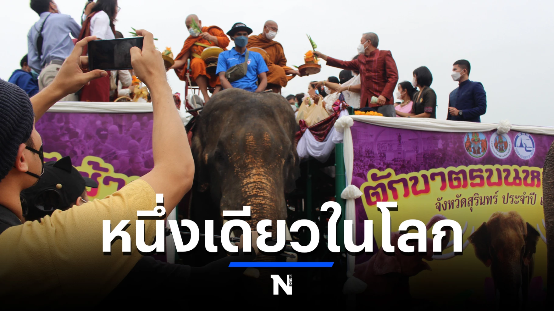 วันที่ 13 กรกฎาคม 2565 เวลา 07.30 น. นายสุวพงศ์ กิติภัทย์พิบูลย์ ผู้ว่าราชการจังหวัดสุรินทร์ พร้อมด้วยข้าราชการ พุทธศาสนิกชน ร่วมทำบุญตักบาตรข้าวสารอาหารแห้ง ใส่บาตรพระสงฆ์ที่นั่งรับบิณฑบาตบนหลังช้าง ท่ามกลางสายฝนที่โปรยปราย มีพุทธศาสนิกชนและนักท่องเที่ยวมาร่วมทำบุญใส่บาตรบนหลังช้างเนื่องในวัน “อาสาฬหบูชา” จำนวนมาก มีขบวนช้างขององค์การบริหารส่วนจังหวัดสุรินทร์ โดยให้พระเถรชั้นผู้ใหญ่ พร้อมพระภิกษุ สามเณรนั่งบนหลังช้างรับบิณทบาตรจากประชาชน