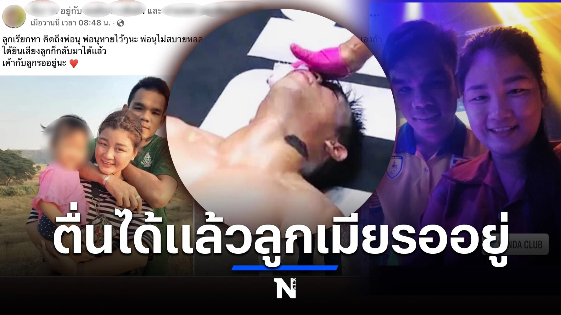ลูกเรียกหา คิดถึงพ่อนุ พ่อนุหายไว้ๆนะ พ่อนุไม่สบายหลอ พ่อนุอยุ่โรงบาลหลอ หนูขอคุยกับพ่อนุได้ไม เองถ้าได้ยินเสียงลูกก็กลับมาได้แล้ว เค้ากับลูกรออยู่นะ