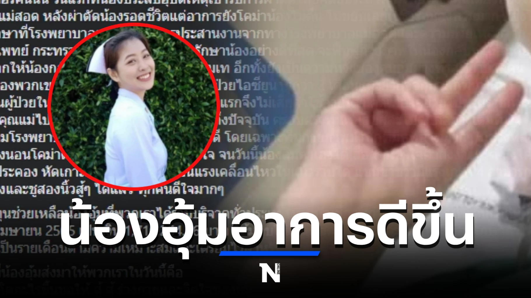 “น้องเข้ารับการรักษาในหอผู้ป่วยไอซียูนานกว่า 2 เดือนและย้ายออกมาพักฟื้นที่ห้องพิเศษเป็นผู้ป่วยในพระบรมราชานุเคราะห์มาตั้งแต่แรกจึงไม่เสียค่าใช้จ่ายใดๆ คุณพ่อได้ย้ายไปช่วยราชการที่กรุงเทพ คุณแม่ไปเฝ้าที่โรงพยาบาลตั้งแต่ต้นจนถึงปัจจุบัน ครอบครัวทุ่มเทเสียสละไปดูแลอย่างเต็มที่ 24 ชั่วโมง ทีมโรงพยาบาลราชวิถีดูแลน้องเป็นอย่างดี โดยเฉพาะทีมกายภาพบำบัดที่มีบทบาทมากๆในช่วงหลัง จากที่น้องนอนโคม่าติดเตียงใช้เครื่องช่วยหายใจ จนวันนี้น้องลืมตาเองได้ สื่อสารเข้าใจคำสั่งง่ายๆได้ นั่งได้โดยการประคอง หัดเกาะยืน แขนขาซ้ายอ่อนแรงเคลื่อนไหวในแนวราบได้ แขนขาขวามีแรงเกรด 4 สามารถบริหารเองและชูสองนิ้วสู้ๆ ได้แล้ว ทุกคนดีใจมากๆ”