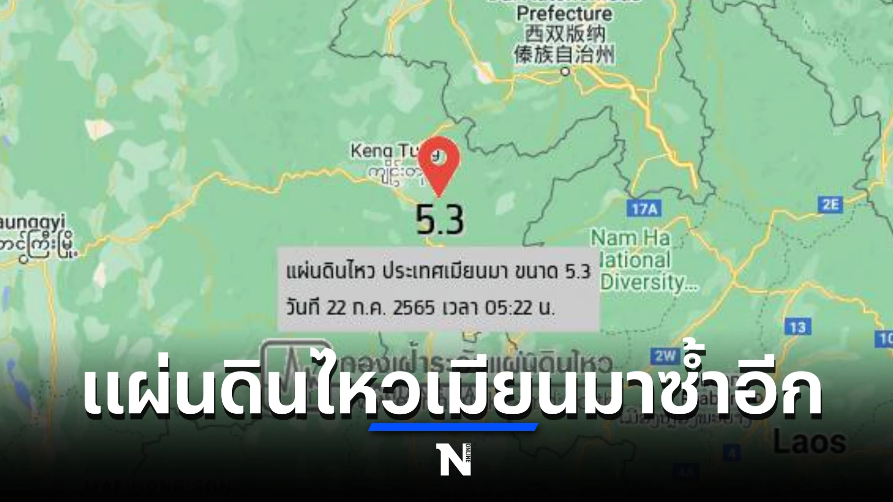 ล่าสุดช่วงเวลา 05.22 น. กรมอุตุนิยมวิทยา ได้ออกประกาศเรื่อง แผ่นดินไหวที่ ประเทศเมียนมาอีกครั้ง โดยระบุว่า วันศุกร์ที่ 22 กรกฎาคม พ.ศ. 2565 เวลา 05:22 น. ตามเวลาประเทศไทยขนาด 5.3 ลึก 4 กม. ทางทิศตะวันออกเฉียงเหนือของ อ.แม่สาย จ.เชียงราย ประมาณ 82 กม. ได้รับแจ้งรู้สึกสั่นไหวบริเวณ อ.เมืองเชียงราย อ.แม่จัน จ.เชียงราย
