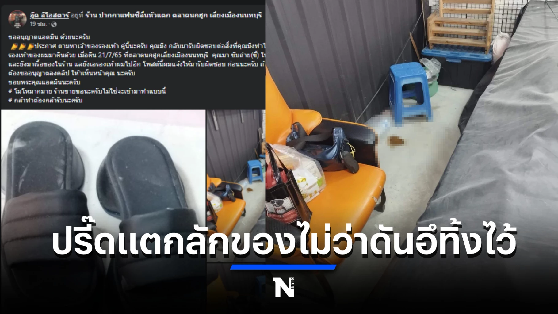 เป็นที่วิพากษ์วิจารณ์อย่างมากในโซเชียล กรณีที่วานนี้ (22 ก.ค.) ผู้ใช้เฟซบุ๊กรายหนึ่ง โพสต์ข้อความแจ้งเตือนภัยในกลุ่มข่าวสารจังหวัดนนทบุรี ประกาศหา คนร้ายเป็นหญิงสาวรายหนึ่งเข้ามาลักรองเท้าแตะ 1 คู่ พร้อมกับอุจจาระใส่ร้าน โดยระบุว่า