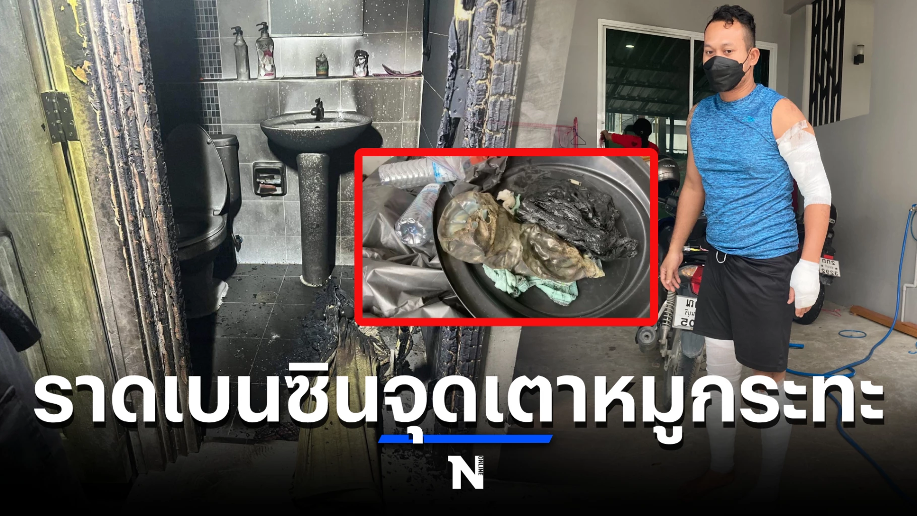 โดย นายเอกชัย เล่าให้ฟังว่า ช่วงเกิดเหตุตนเองได้ก่อไฟเตาเพื่อจะย่างหมูกระทะ ขณะที่ก่อไฟอยู่ ถ่านในเตาทำท่าจะติดไม่ติดนี่แหละ ตนเองเลยตัดสินใจไปเอาถังน้ำมันเบนซินที่ซื้อไว้สำรองเติมรถจักรยานยนต์ จากหน้าบ้าน ซึ่งในถังมีน้ำมันเบนซินอยู่ 3 ลิตรกว่าๆ หลังจากนำถังน้ำมันมาที่เตาไฟ ตนเองก็ได้ เปิดฝาถังแล้วก็ เทน้ำมันลงไปในเตาเลย
