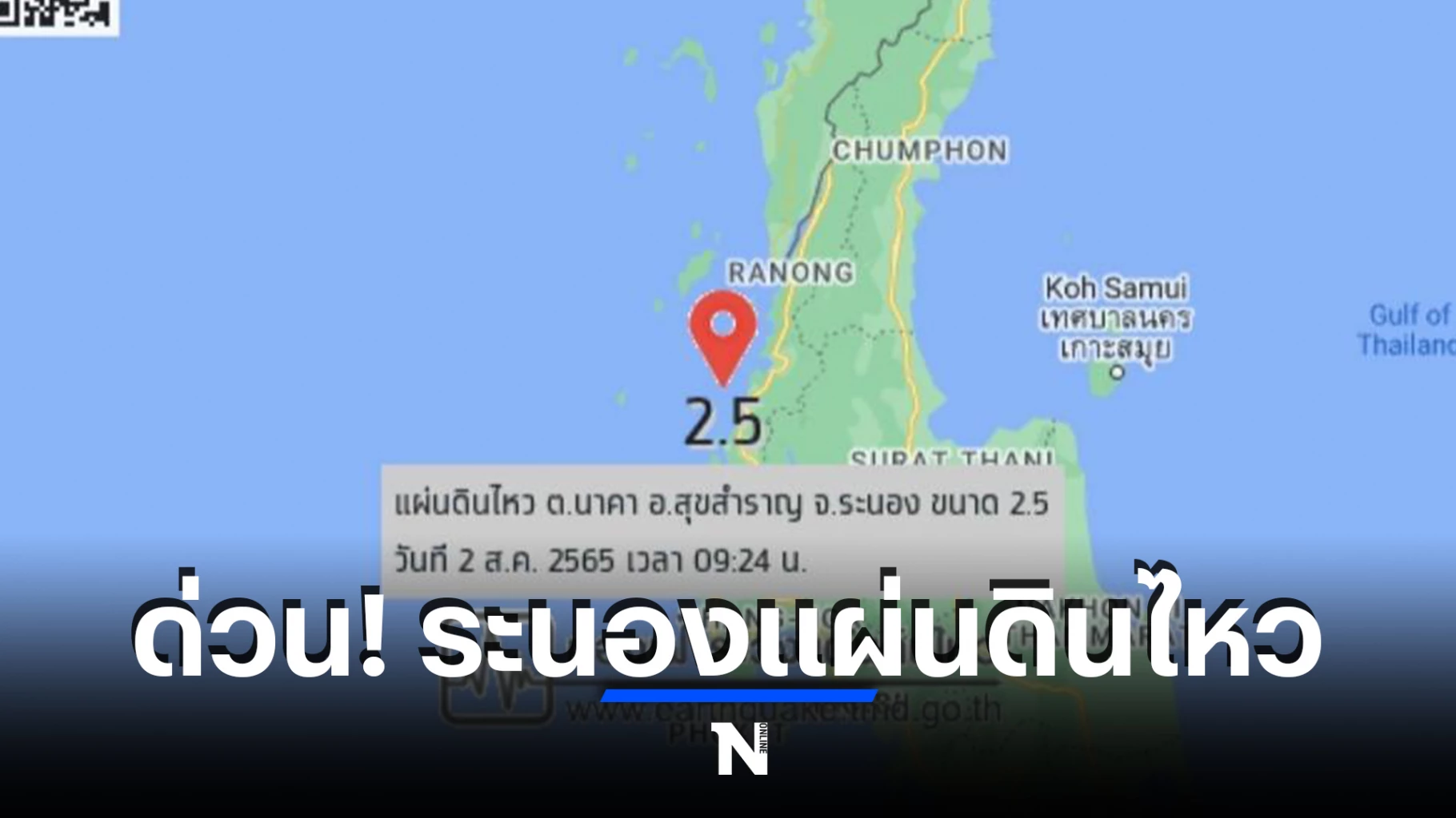 2 สิงหาคม 2565 กรมป้องกันและบรรเทาสาธารณภัย (ปภ.) กระทรวงมหาดไทย รายงานวันนี้ (2 ส.ค. 65) เวลา 09.24 น เกิดแผ่นดินไหวขนาด 2.5 ความลึก 1 กม.บริเวณ ต.นาคา อ.สุขสำราญ จ.ระนองใกล้ชายฝั่งทางทิศตะวันตกของ อ.สุขสำราญ จ.ระนอง ประมาณ 13 กม. ปภ.ระนองอยู่ระหว่างลงพื้นที่ตรวจสอบ