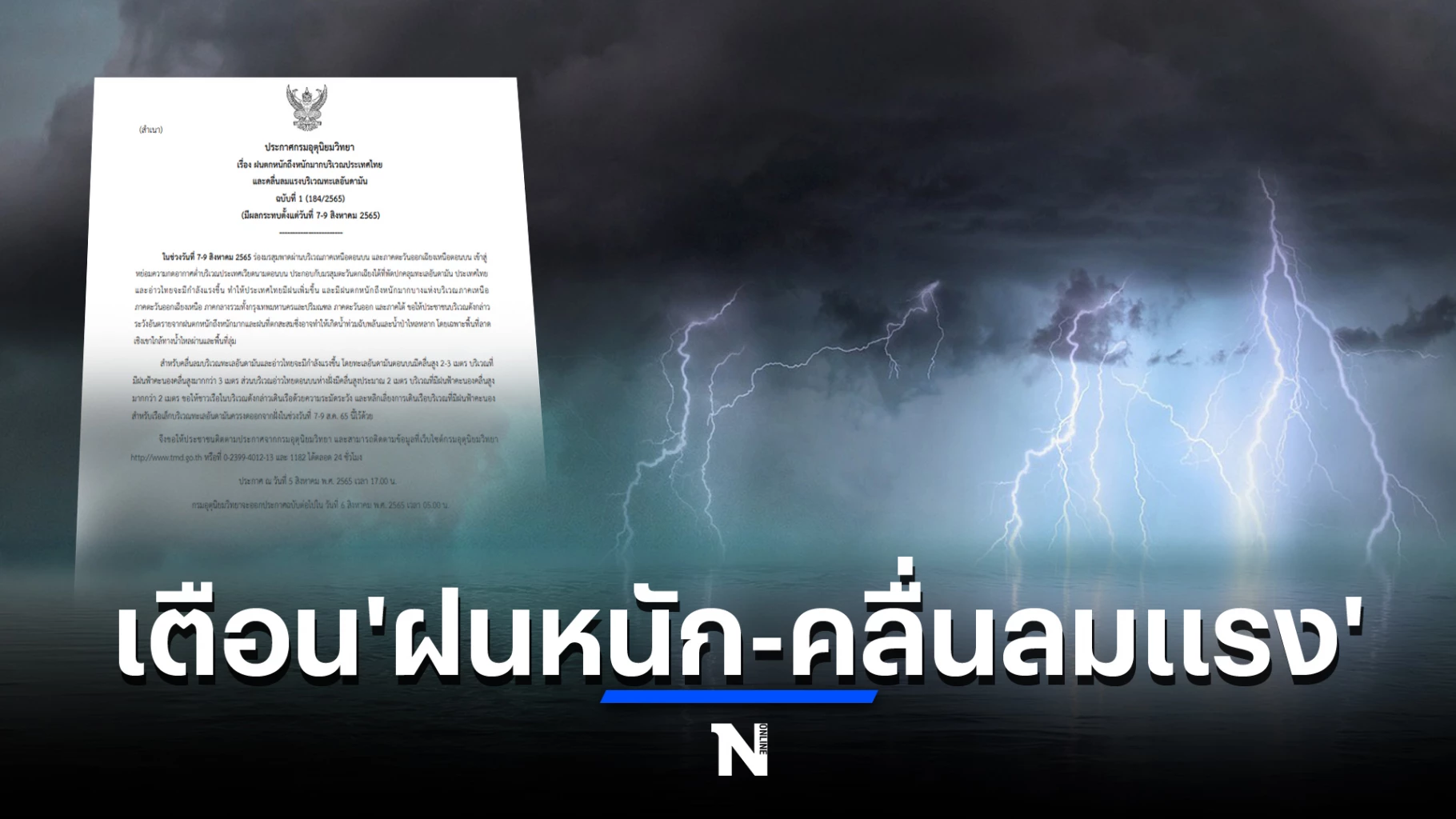 กรมอุตุฯ ประกาศเตือนฉบับที่ 1 "ฝนตกหนัก-คลื่นลมแรง" ช่วง 7-9 ส.ค.นี้
