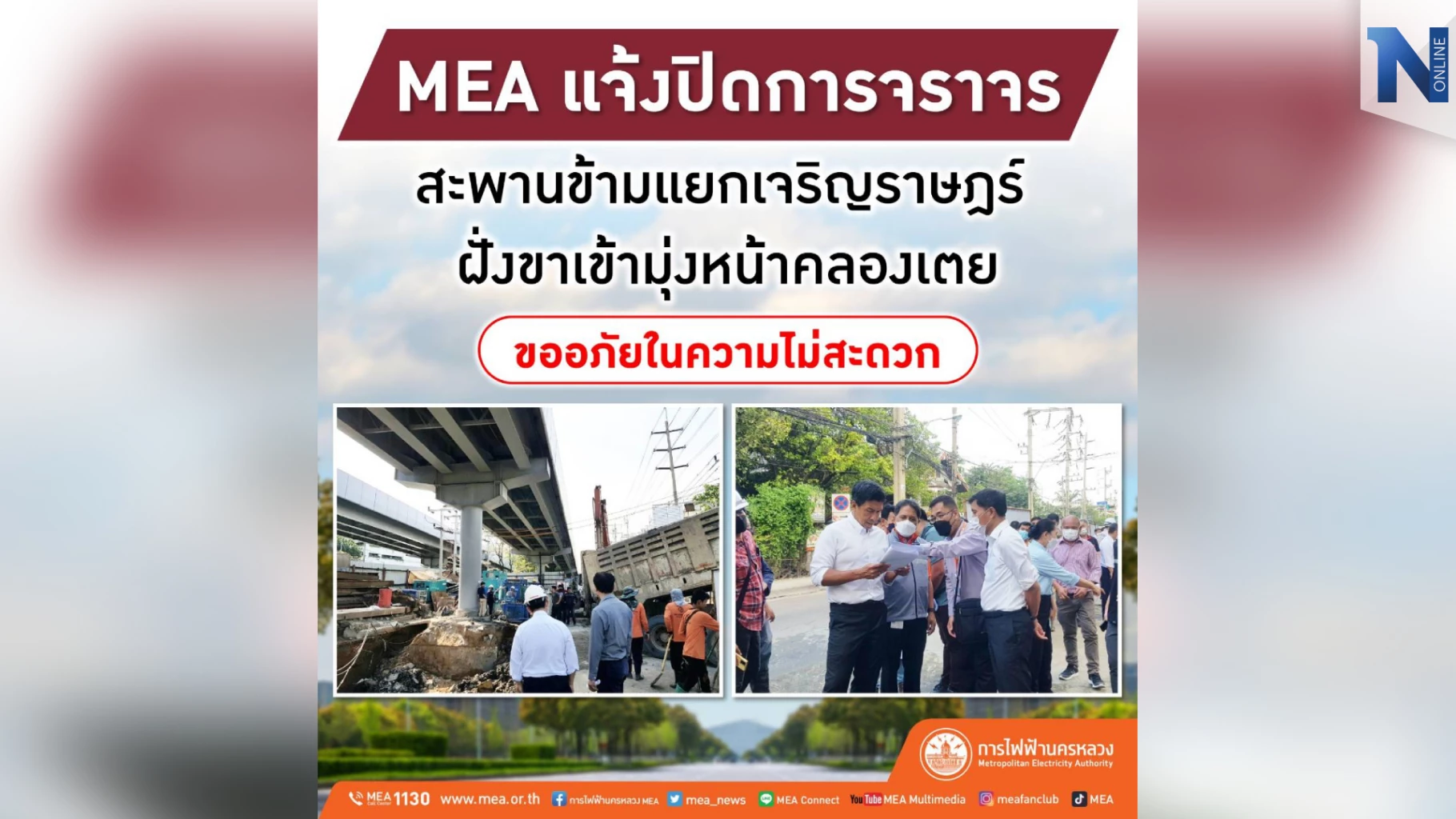 อย่างไรก็ตาม MEA ในฐานะผู้ว่าจ้างการก่อสร้าง ต้องขออภัยในความไม่สะดวก กับประชาชน และผู้สัญจร ขอให้ขับรถด้วยความระมัดระวัง และชะลอความเร็วในบริเวณดังกล่าว ทั้งนี้หากประชาชนพบเห็นสายไฟฟ้าหรืออุปกรณ์ไฟฟ้าของ MEA ชำรุด หรืออยู่ในสภาพที่ไม่ปลอดภัย สามารถแจ้งเหตุได้ที่ MEA Smart Life Application ซึ่งเป็นแอปพลิเคชันบนสมาร์ทโฟนระบบ iOS และ Android ของ MEA ดาวน์โหลดฟรี คลิก https://onelink.to/measmartlife หรือช่องทางโซเชียลมีเดียต่างๆ ได้แก่ Facebook : การไฟฟ้านครหลวง MEA, Line : MEA Connect, Twitter: @mea_news และศูนย์บริการข้อมูลผู้ใช้ไฟฟ้าการไฟฟ้านครหลวง MEA Call Center 1130 ได้ตลอด 24 ชั่วโมง