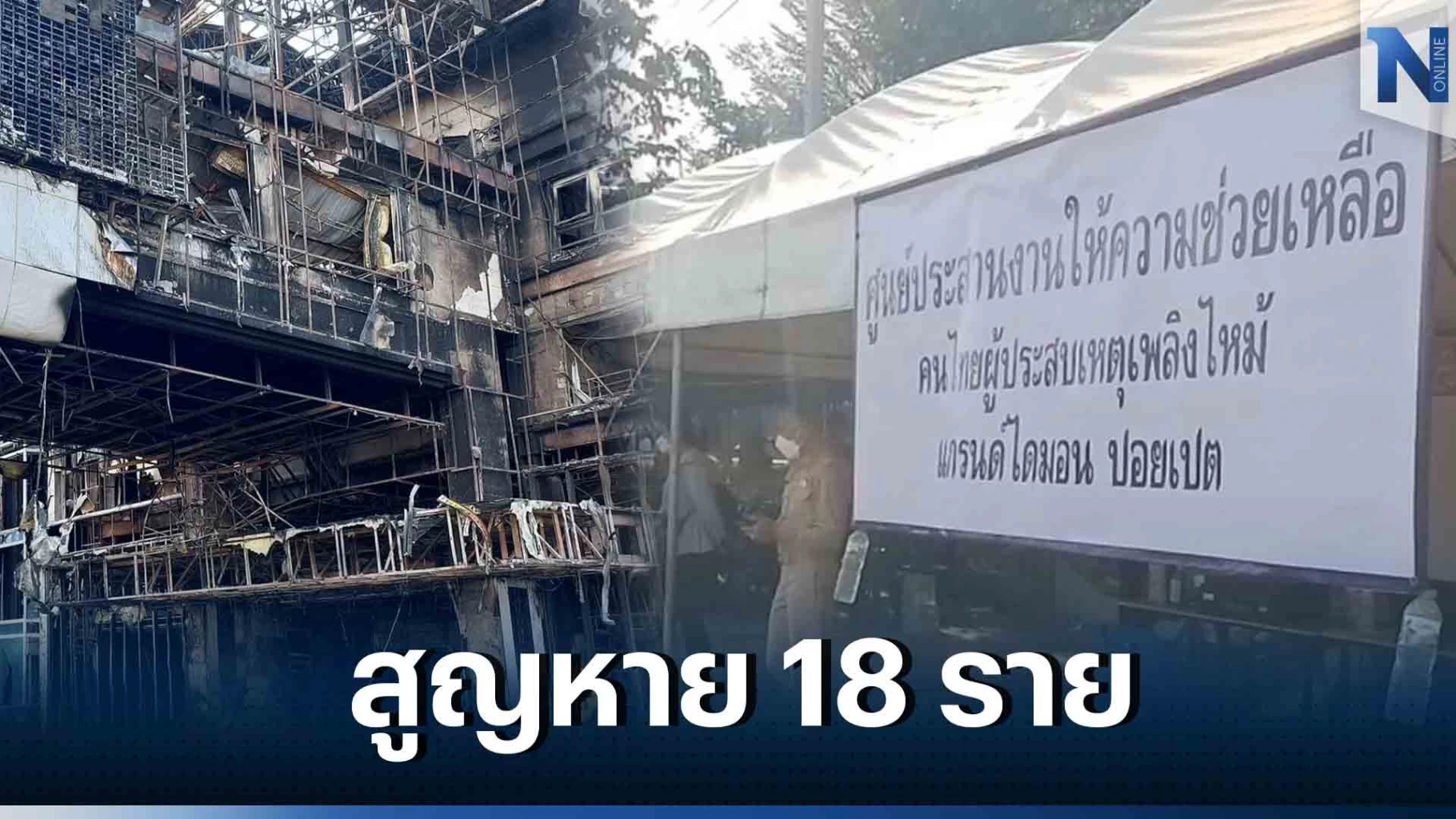 ส่วนบรรยากาศที่ศูนย์ประสานงานความช่วยเหลือคนไทยผู้ประสบเหตุไฟไหม้ นายธวัฒน์ชัย บุญเเสง ปลัดอำเภออรัญประเทศ เปิดเผยว่า จากการประสานงานกับญาติที่เเจ้งการสูญหาย จากเดิม 50 ราย หลังการโทรสอบถาม เป็นรายบุคคล ณ เวลา 13.30 น. คงเหลือผู้สูญหาย ทั้งหมด 18 ราย ส่วนยอดการเสียชีวิตที่เป็นไทยอยู่ที่ 27 ราย บาดเจ็บรักษาตัวในโรงพยาบาล 27 ราย จากยอดผู้ประสบภัยทั้งหมด 107 รายที่ลงทะเบียน