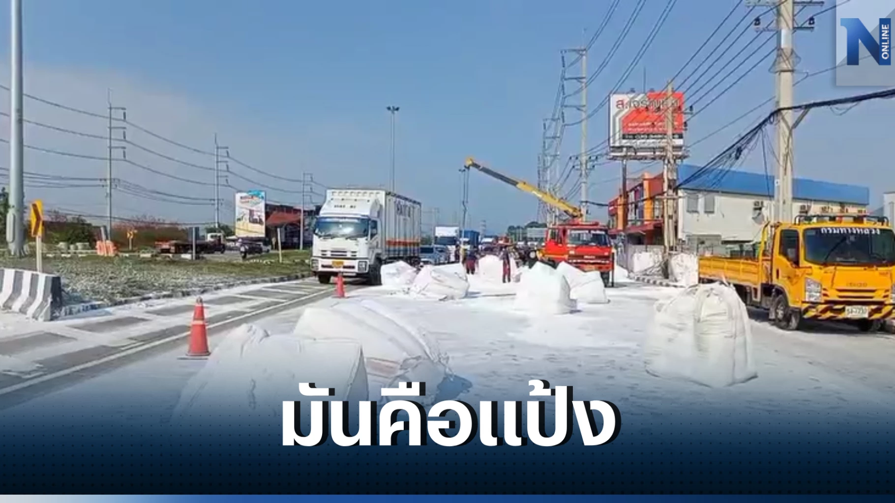 15 พฤษภาคม 2566 เมื่อเวลา 16.30 น. พ.ต.ต เศรษฐพล สิงห์นอก สารวัตรเวรสอบสวน สภ.หนองขาม อ.ศรีราชา จ.ชลบุรี ได้รับแจ้งมีอุบัติเหตุ รถบรรทุกพ่วง ทำถุงบิ๊กแบ็กที่บรรจุแป้งมันสำปะหลัง หล่นกลางถนน ทำให้มีการจราจรติดขัดยาวหลายกิโลเมตร บริเวณยูเทิร์นนิคมปิ่นทอง1 ถ.มาบเอียง ขาเข้าแหลมฉบัง ม.1 ต.หนองขาม อ.ศรีราชา จ.ชลบุรี หลังรับแจ้ง จึงประสานไปที่หน่วยป้องกันและบรรเทาสาธารณภัย เทศบาลนครเจ้าพระยาสุรศักดิ์ เพื่อขอกำลังเจ้าหน้าที่ และรถดับเพลิงเข้าสนับสนุน