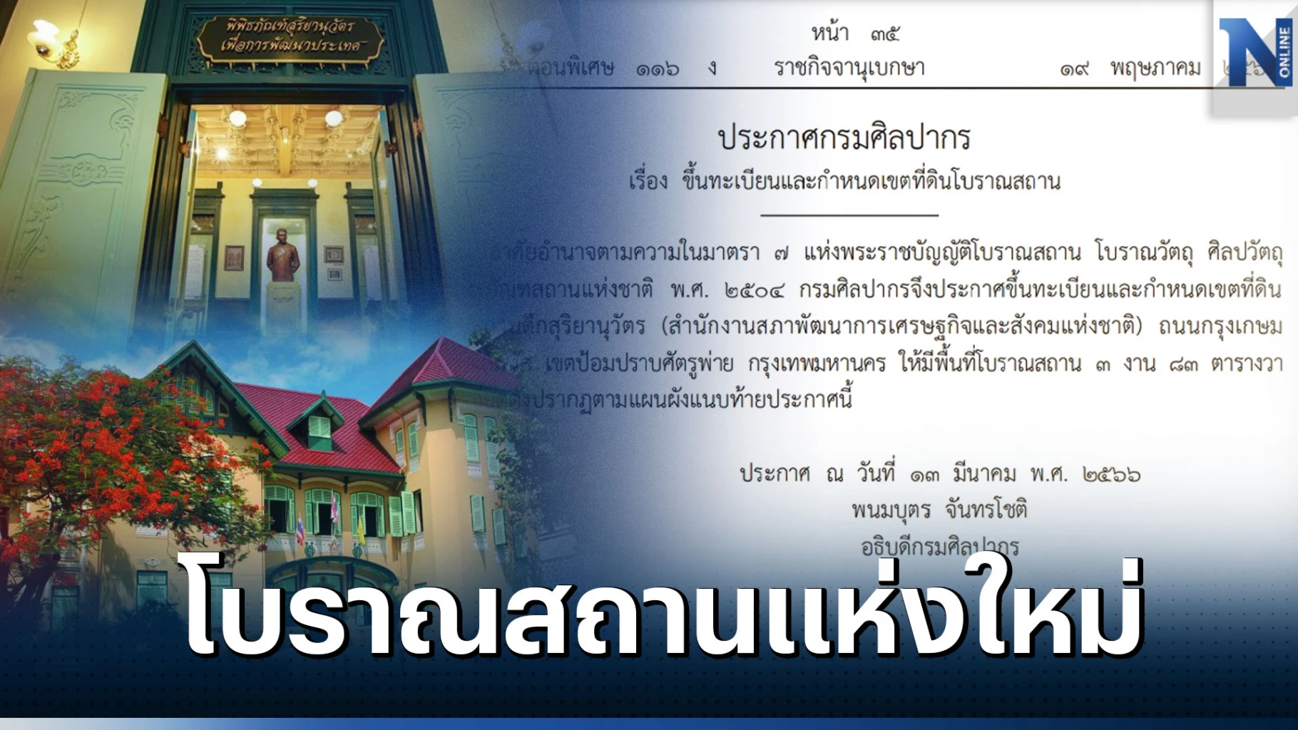"ราชกิจจาฯ" เผยแพร่ ประกาศกรมศิลปากร ขึ้นทะเบียนและกำหนดเขตที่ดิน "ตึกสุริยานุวัตร" สำนักงานสภาพัฒนาการเศรษฐกิจและสังคมแห่งชาติ ให้เป็น"โบราณสถาน"