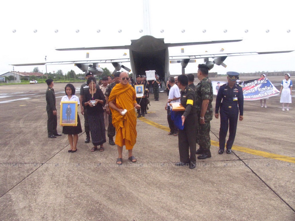 มี พ.อ.โสภณ จันทร์เปรม รองผู้บัญชาการมณฑลทหารบกที่ 24 ค่าประจักษ์ศิลาปาคม นำกองเกียรติยศตั้งแถวรับศพ ที่ใส่โลงมีธงชาติไทยคลุมอย่างสมเกียรติโดยมีนายวิเชียร พิมพรัตน์ บิดา นางมะลิวัลย์ พิมพรัตน์ มารดา นำญาติพี่น้อง พร้อมตัวแทนข้าราชการ , ทหารบก , ทหารอากาศ , ตำรวจ กก.ตชด.ที่ 24 , ตำรวจภูธร และประชาชนทั่วไป มาร่วมรับศพ ท่ามกลางความโศกเศร้าเสียใจ ด้วยการเคลื่อนศพลงจากเครื่องบิน ผ่านแถวกองเกียรติยศ และผู้มาร่วมรับศพ ขึ้นไปยังรถ "จีเอ็มซี." เคลื่อนออกจาก บน.23 อุดรธานี ไปตั้งบำเพ็ญกุศลที่วัดบ้านโนนสูง ถ.มิตาภาพ ทม.โนนสูง-น้ำคำ อ.เมือง จ.อุดรธานี อส.ทพ.นัทพงศ์ พิมพรัตน์ อายุ 28 ปี เกิดที่ 41/1 ม.6 บ.ทุ่งโพธิ์ ต.โนนสูง อ.เมือง จ.อุดรธานี บิดาชื่อนายวิเชียร พิมพรัตน์ สมาชิกสภา อบต.โนนสูง อ.เมือง จ.อุดรธานี มารดาชื่อนางมะลิวัลย์ พิมพรัตน์ อาสาสมัครสาธารณสุขประจำตำบลโนนสูง มีน้องสาว 1 คน ชื่อ น.ส.ดวงกมล อายุ 20 ปี กำลังศึกษาชั้นปีที่ 1 มรภ.อุดรธานี จนการศึกษาระดับ ปวส.สาขาไฟฟ้าเครื่องกล โรงเรียนช่างกลอุดรธานี มีความฝันอยากเป็นทหาร ได้เดินทางลงไป จ.นราธิวาส เพื่อสมัครเป็นทหารโดยตรง ด้วยการใช้การเรียน รด.จบชั้นปีที่ 3 เป็นใบเบิกทาง