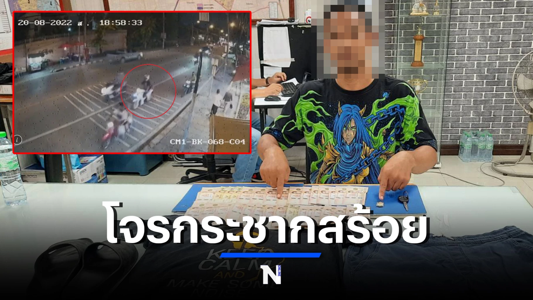 โดยคดีนี้เกิดขึ้นเมื่อวันที่ 20 สิงหาคม เวลาประมาณ 18.50 น. ขณะที่ตำรวจฝ่ายสืบสวนปฏิบัติหน้าที่อยู่ได้รับแจ้งจาก ผู้เสียหายเป็นหญิง อายุ 27 ปี แจ้งว่าระหว่างขับขี่รถจักรยานยนต์ออกจากตลาดซอยนวลจันทร์ 38 เข้าซอยนวลจันทร์ 36 ประมาณ 100 เมตร ได้มีคนร้าย 1 คน ขับขี่รถจักรยานยนต์ ยี่ห้อฮอนด้า รุ่นเวฟ สีขาว ไม่ติดแผ่นป้ายทะเบียน มาประกบด้านข้าง ก่อนกระชากสร้อยคอทองคำน้ำหนัก 2 บาทพร้อมพระหลวงปู่หลิวเหลี่ยมทองแล้วหลบหนี