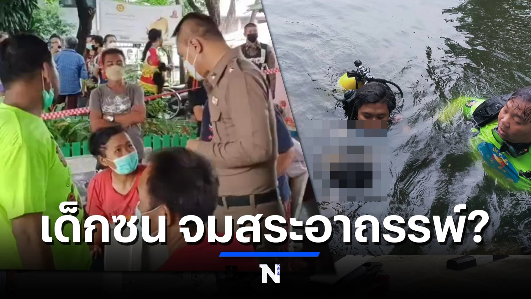 ต่อมา เจ้าหน้าที่ชุดประดาน้ำจากมูลนิธิป่อเต็กตึ๊ง ลงปฏิบัติงานค้นหา ใช้เวลาเกือบ 1 ชั่วโมงจึงพบร่าง ก่อนนำขึ้นสู่ผิวน้ำ ในสภาพศพ ไม่สวมเสื้อ สวมเพียงกางเกงยีนส์สีดำ ทราบชื่อ ด.ช.ณัฐวุฒิ (สงวนนามสกุล)