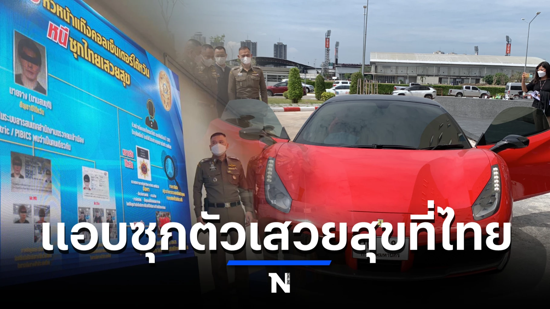 โดยการจับกุมมีขึ้น หลัง สตม. ได้ตรวจพบรถยนต์เฟอร์รารี่ สีแดง ทะเบียน กต 488 กรุงเทพมหนคร มูลค่า 24 ล้านบาท จอดให้ในห้างสรรพสินค้าแห่งหนึ่ง