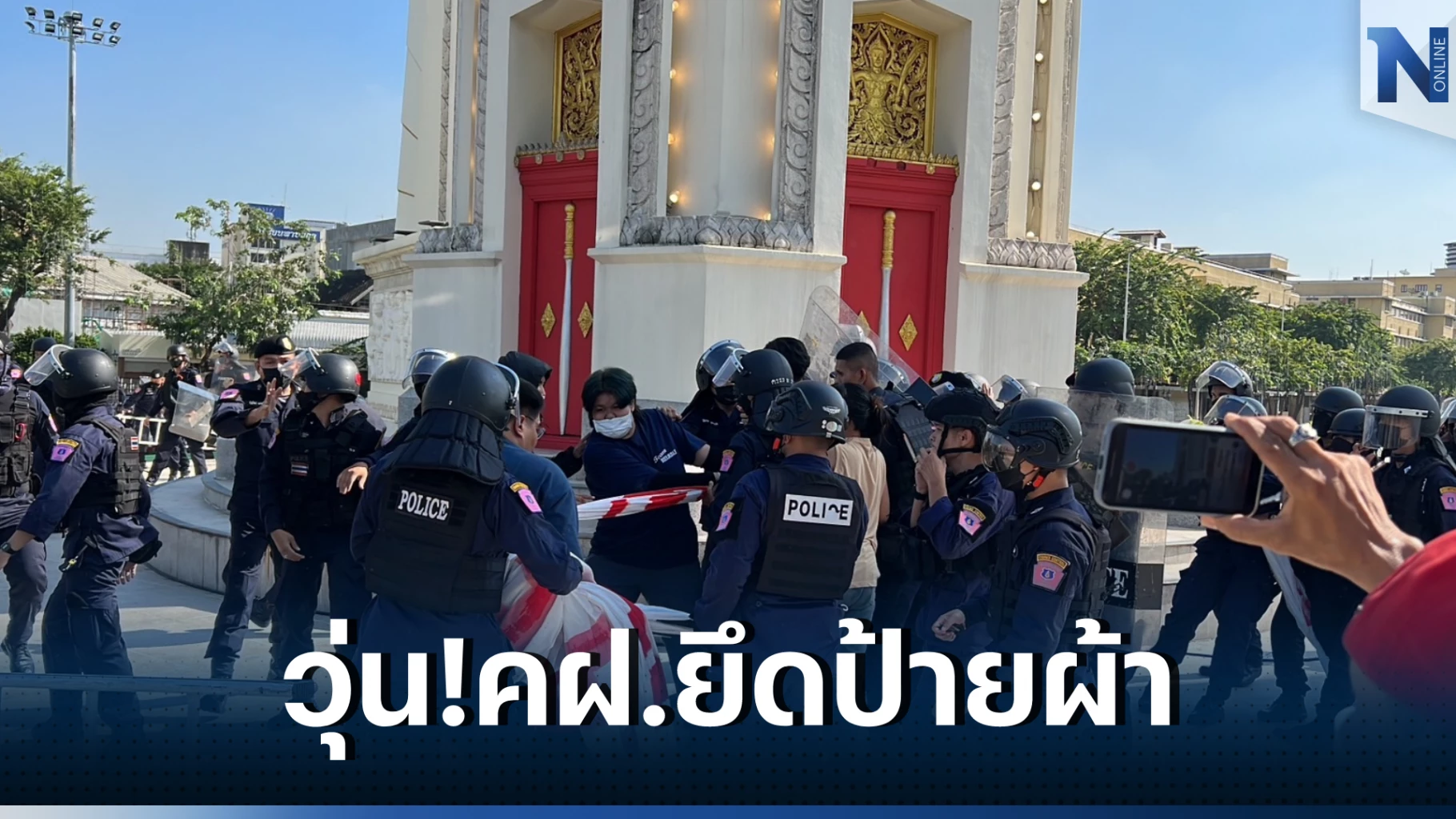 เวลา 09.45 น. เกิดเหตุชุลมุน กลุ่มผู้ชุมนุมวิ่งออกจากบริเวณเกาะอนุสาวรีย์ประชาธิปไตย เพื่อขึ้นรถกระบะ ระหว่างนั้นเจ้าหน้าที่มีการใช้กําลังในการจับกุมด้วยการฉุดกระชาก ทั้งมีการใช้โล่กระแทกหน้าผู้ชุมนุม แต่ไม่สามารถจับกุมได้
