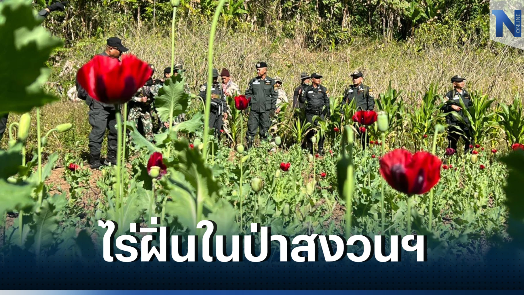 ตร.บุกตัดทำลายไร่ฝิ่น ปลูกเย้ยกฎหมายในป่าสงวนฯ กลางหุบเขาชายแดนเมียนมา