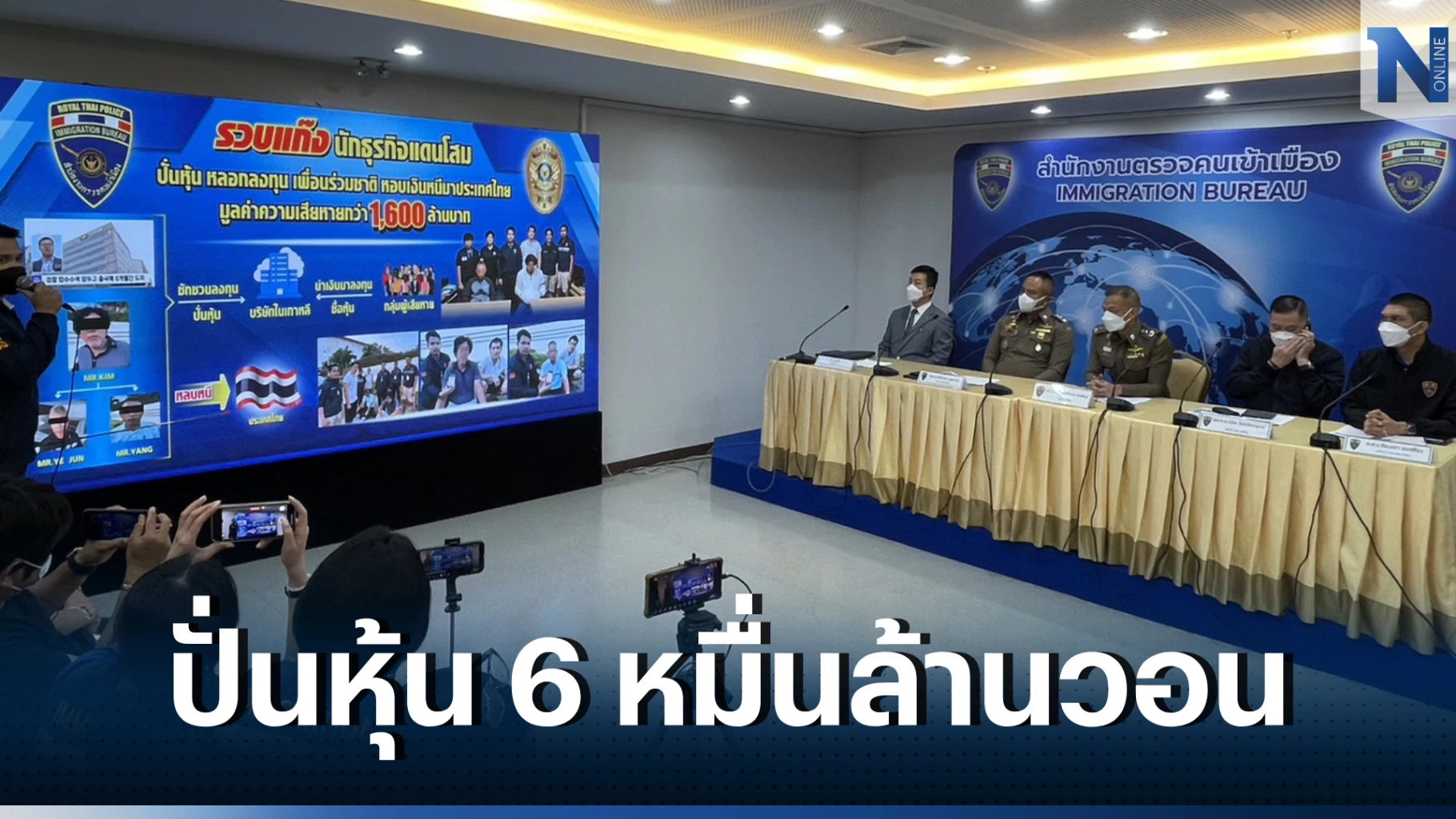 13 มกราคม 2566 เมื่อเวลา 14.00 น. พล.ต.ท.ภาคภูมิภิภัทฒ์ สัจจพันธุ์ ผบช.สตม. พร้อมเจ้าหน้าที่ตำรวจ สตม.แถลงการจับกุม แก๊งชาวเกาหลีหลอกเพื่อนร่วมชาติลงทุน และปั่นหุ้น ก่อนยักยอกเงินที่ได้หลบหนีมายังประเทศไทย มีผู้เสียหายหลายราย มูลค่าความเสียหาย เป็นจำนวนเงินกว่า 6 หมื่นล้านวอน หรือประมาณ 1,600 ล้านบาท