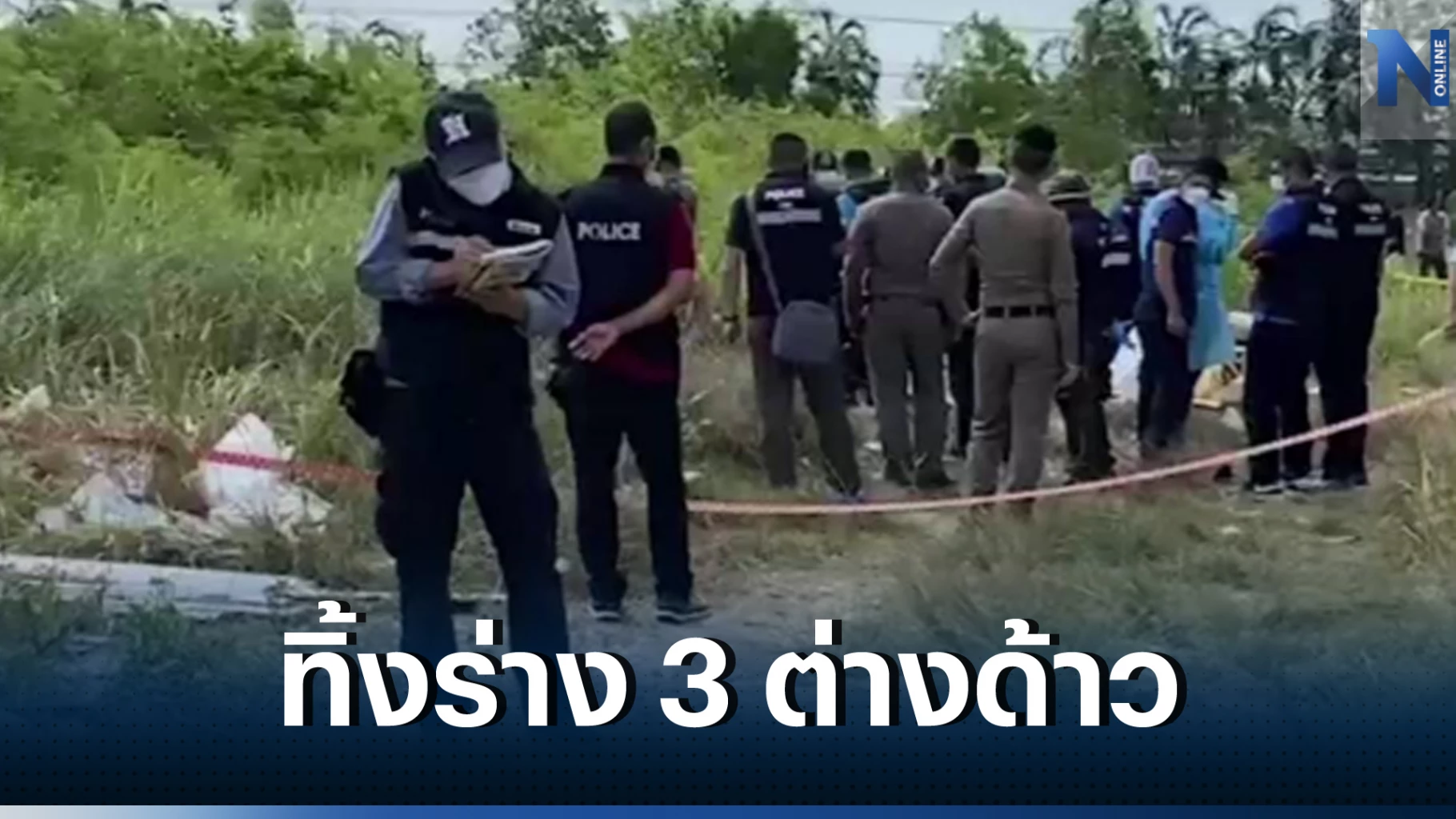 ที่เกิดเหตุพบศพชาย 3 คน นอนหงายกองรวมกันอยู่สภาพศพน่าจะเสียชีวิตมาแล้ว 2-3 วัน โดยทั้งสามศพถูกใช้ผ้า กระสอบ และถุงพลาสติกปิดอำพรางเอาไว้
