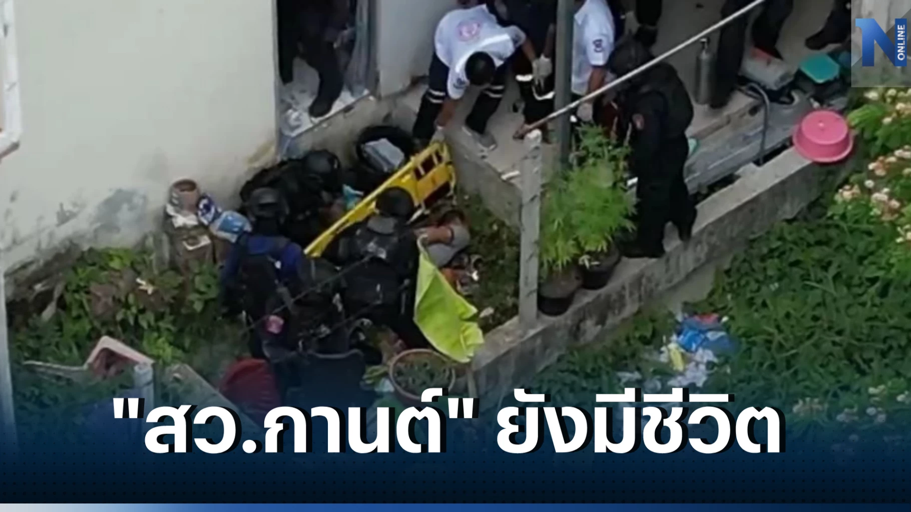 - เวลา 09.20 น. เจ้าหน้าที่เผยภาพจาก "โดรนตำรวจ" ที่ถ่ายจากภายในบ้านของ "สารวัตรกานต์" ซึ่งภาพมีความชัดเจนและยืนยันได้ว่ามีชีวิต