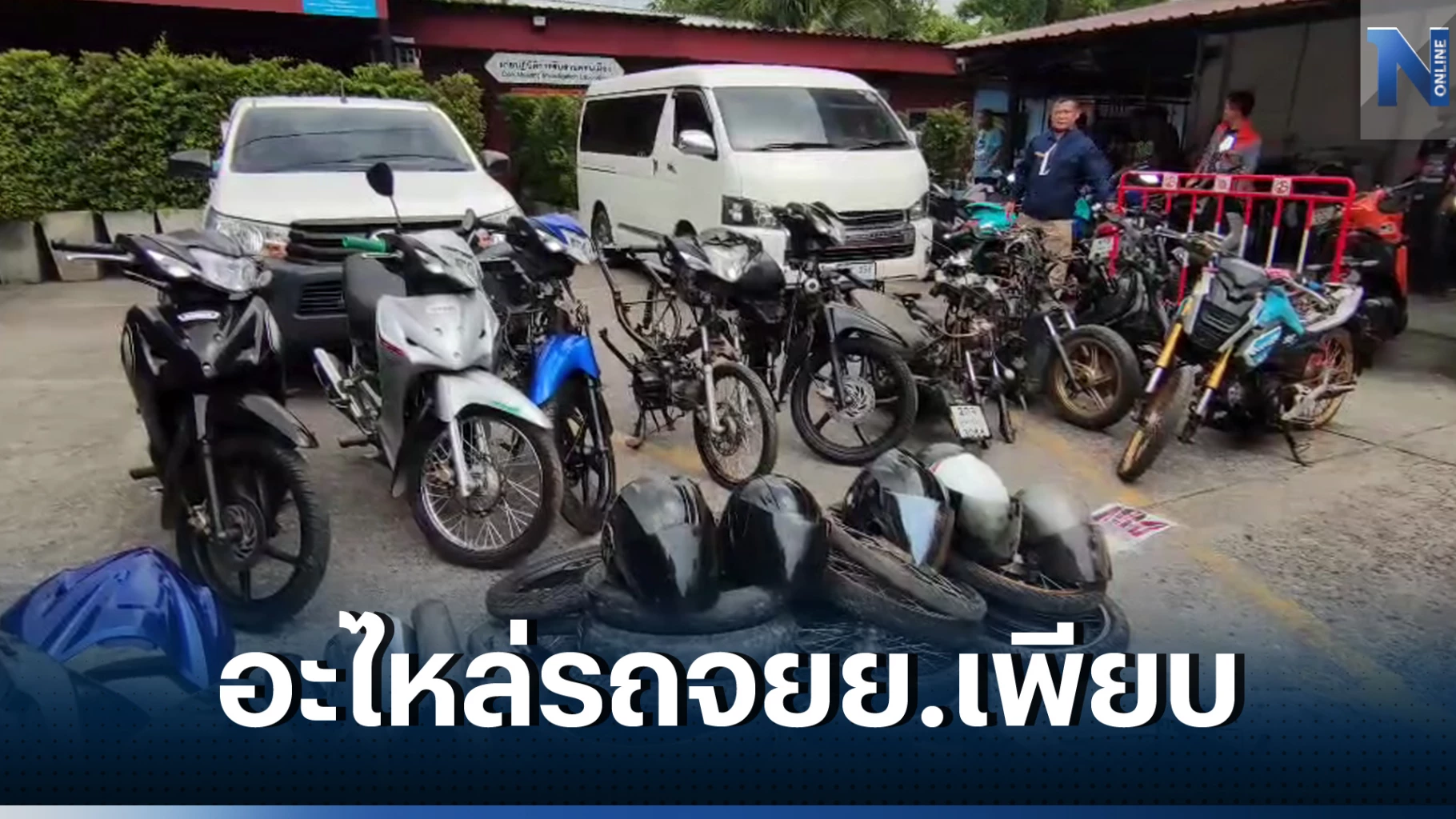พร้อมของกลางรถยนต์กระบะ ยี่ห้อโตโยต้า รุ่นรีโว่ สีขาว ทะเบียน 2 ฒล 2693 กรุงเทพมหานคร ดัดแปลงเป็นรถขนจักรยานยนต์ และรถตู้ ยี่ห้อโตโยต้า รุ่นเวนจูรี่ สีขาว ทะเบียน ฮอ-351 กรุงเทพมหานคร (ใช้สำหรับขนรถ จยย.ที่ลักมา) และรถจยย.ยี่ห้อฮอนด้า รุ่นเวฟไอ สีดำ (ไม่สวมป้ายทะเบียน) 1 คัน และ จยย.ยี่ห้อฮอนด้า รุ่นเอ็มเอสเอ็กซ์ สีหฟ้า (ไม่ติดป้ายทะเบียน) 1 คัน
