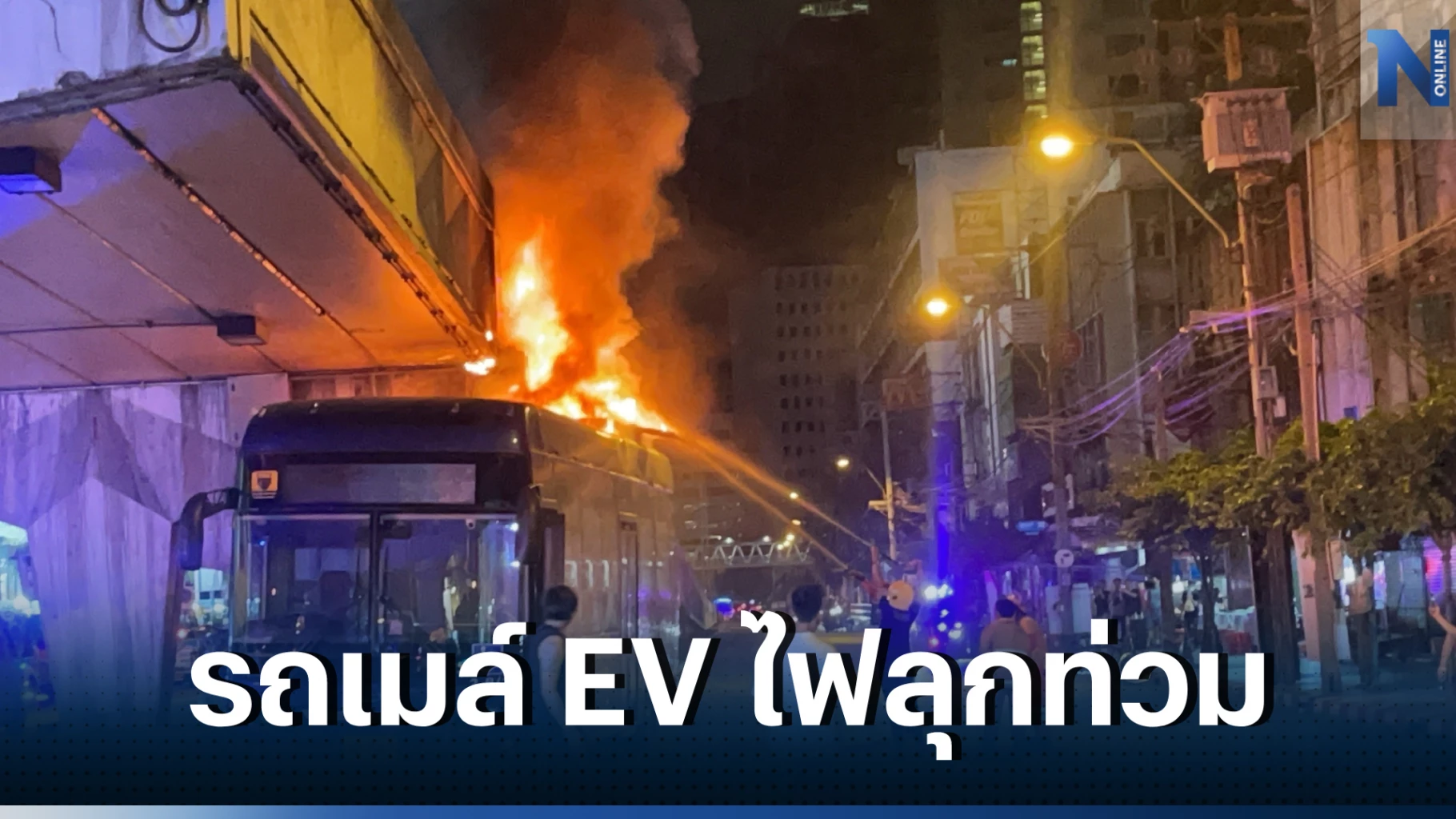 ระทึกกลางดึก! รถเมล์ EV ไฟลุกท่วม กลางแยกประตูน้ำ ขณะจอดรอช่างมาดู หลังคานตอม่อสะพานลอย จนรถติดไม่สามารถขยับได้
