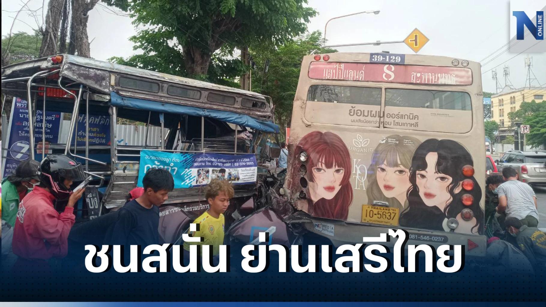 สองแถว - รถเมล์สาย 8 ชนสนั่นเสรีไทย เจ็บ 13