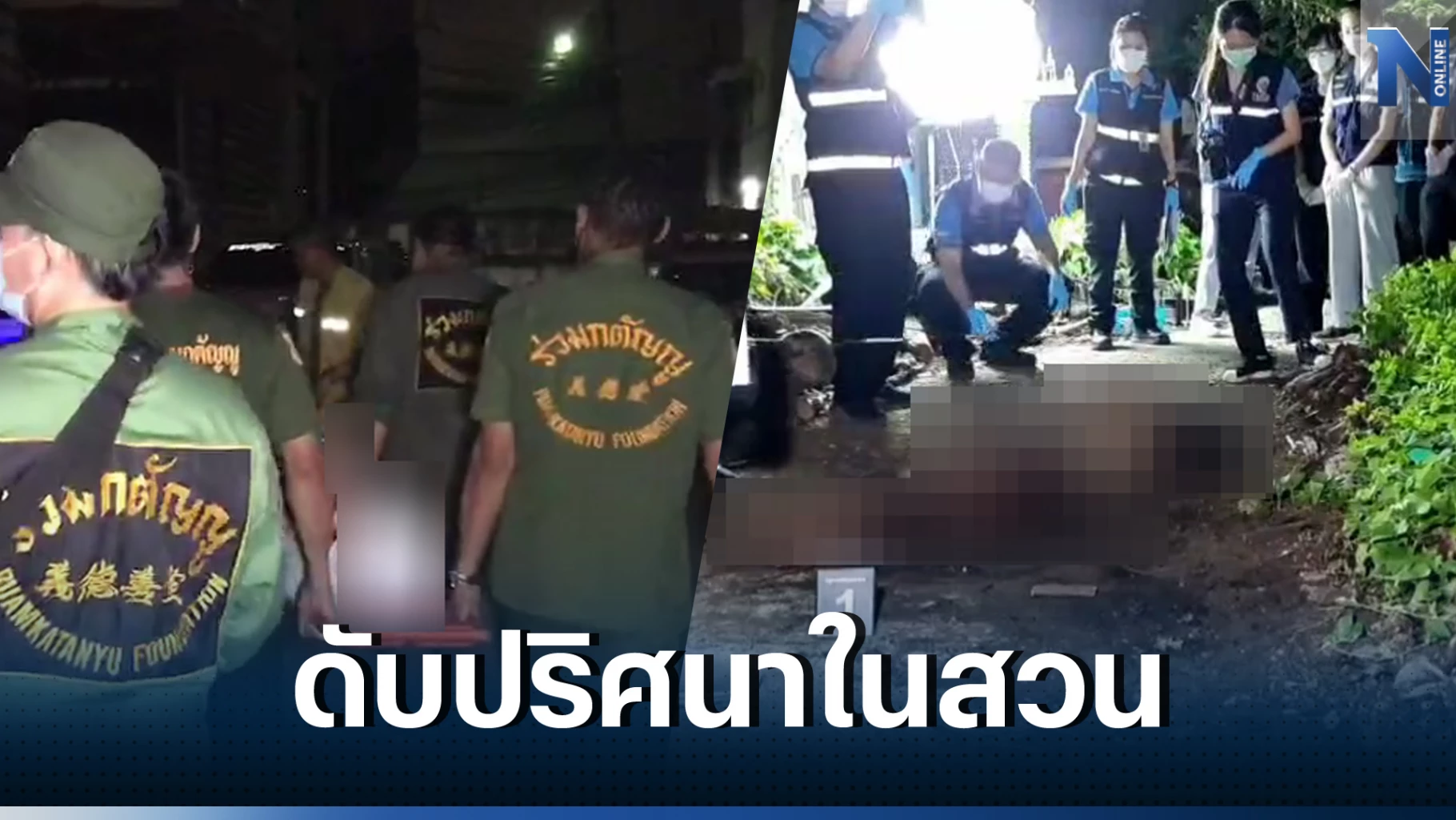 ที่เกิดเป็นบ้านปูนชั้นเดียว ปลูกกลางสวนในที่ดินส่วนบุคคล พื้นที่ประมาณ 100 ตารางวา มีรั้วรอบขอบชิด จากการตรวจสอบบริเวณพงหญ้า ห่างประตูทางเข้าบ้านราว 20 เมตร พบศพนางสมศรี แซ่โง้ว อายุ 62 ปี สภาพนอนตะแคงขวาคว่ำหน้า สวมเสื้อยืดแขนกุดสีขาว นุ่งกางเกงขา 4 ส่วนสีเทา