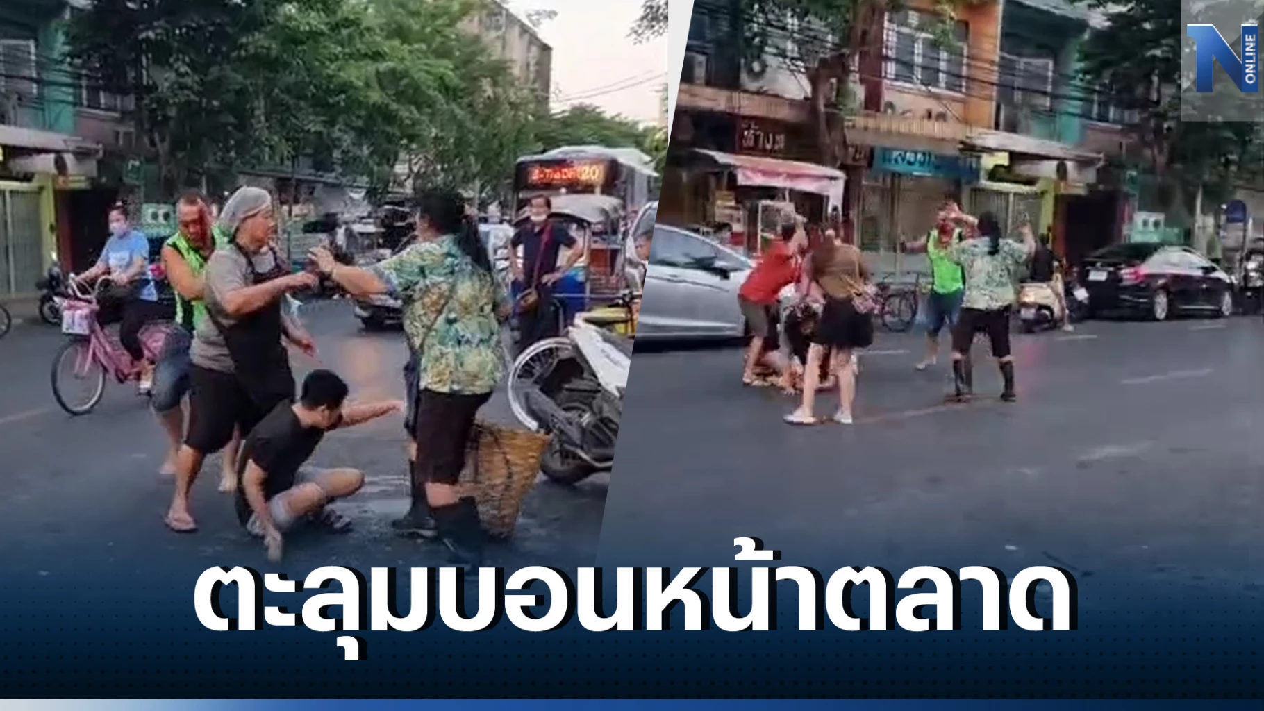 จากนั้นเรียกพวกก็คือกลุ่มแม่ค้าขายปลาที่อยู่ถัดออกไป มารุมทำร้ายแฟนหนุ่มจนเลือดอาบหน้า แฟนหนุ่มจึงต้องทำร้ายร่างกายตอบโต้เพื่อเป็นการปกป้องตนเอง ตะลุมบอลอยู่ประมาณ 3 นาทีเศษ ก็ช่วยกันแยกย้ายพาแฟนตัวเองกลับเข้ามาเช็ดเลือดเช็ดแผลภายในร้าน ซึ่งในระหว่างที่ตนออกไปช่วยห้ามนั้น ตนก็พยายามที่จะถ่ายคลิปเหตุการณ์ แต่ด้วยความที่มือไม้สั่นไปหมดจึงทำอะไรไม่ค่อยถูก