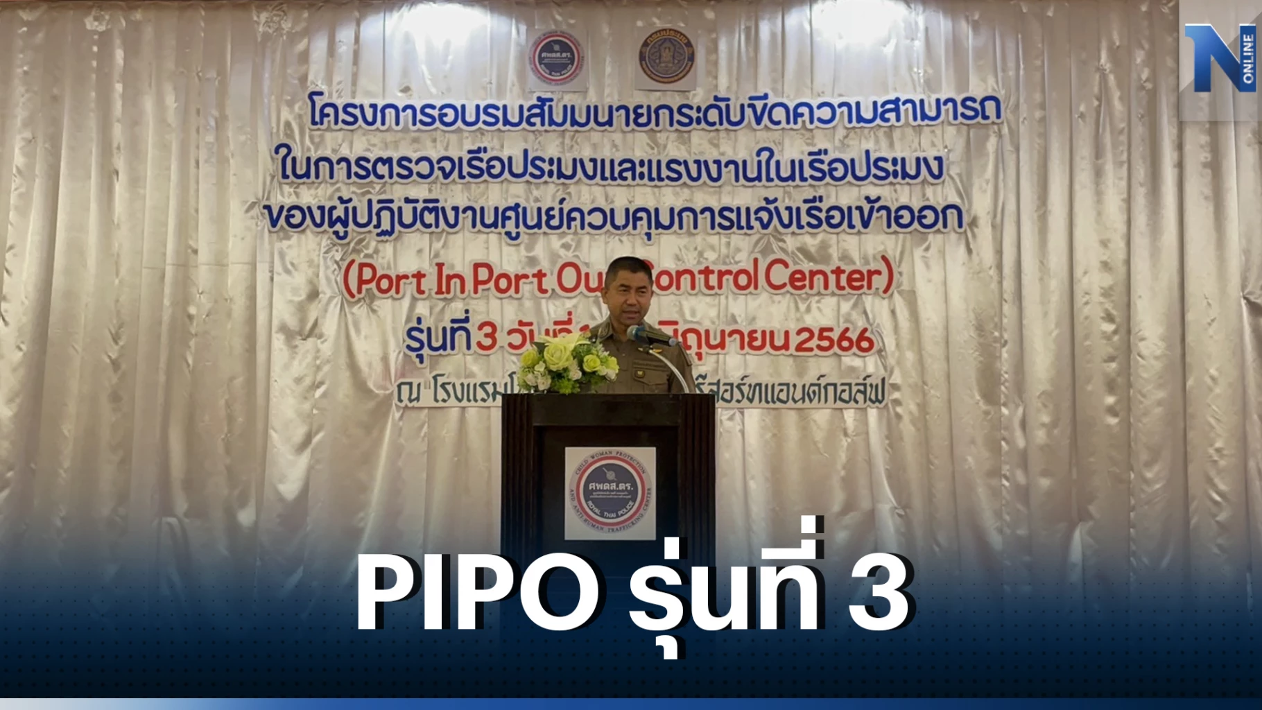 โดยการเปิดการอบรมนี้เป็นการอบรมเจ้าหน้าที่ประจำศูนย์ PIPO เป็นรุ่นที่ 3 แล้ว มีเจ้าหน้าที่จากกองบังคับการตำรวจน้ำ พนักงานสอบสวน ภ.7 กรมประมง กรมเจ้าท่า กรมการจัดหางาน และกรมสวัสดิการและคุ้มครองแรงงาน มาเข้ารับการอบรมจำนวน 62 ราย