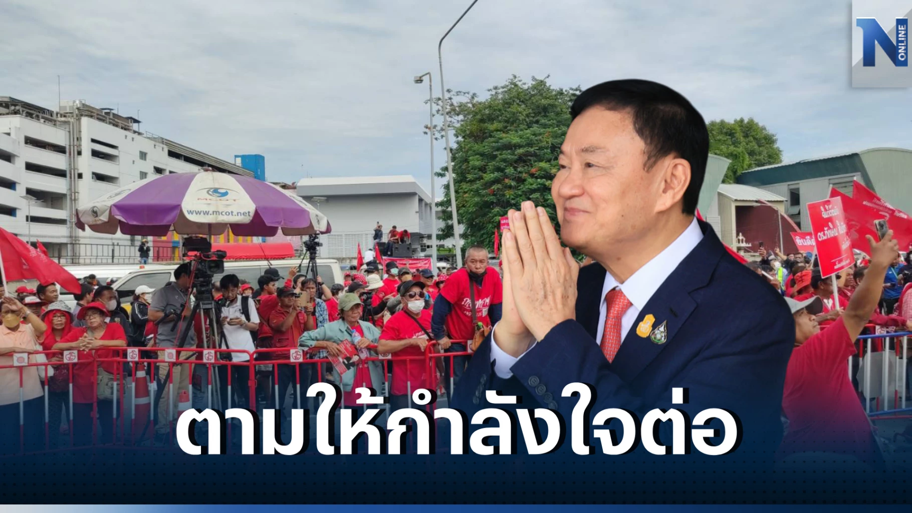 โดยกลุ่มคนเสื้อแดงที่มารอต้อนรับส่วนใหญ่ ได้เคลื่อนขบวนมาปักหลัก รออยู่บริเวณหน้าอาคาร mjet ก่อนหน้านี้แล้ว ทำให้เมื่อนายทักษิณออกมาปรากฏตัว จึงมีการโห่ร้องตะโกน แสดงความยินดี ก่อนที่หลังจากได้ทักษิณเดินกลับเข้าไปในอาคาร ทางกลุ่มคนเสื้อแดงก็ได้มีการประกาศทยอยออกจากพื้นที่ โดยส่วนใหญ่จะเดินทางไปที่ศาลฎีกา และหน้าเรือนจำพิเศษกรุงเทพฯ โดยมีบางส่วนที่เดินทางกลับบ้านเลย