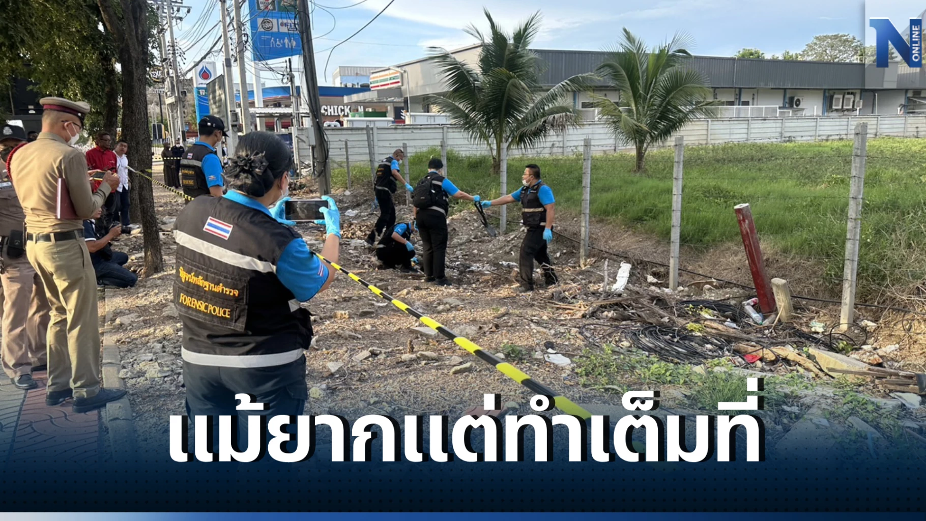 โดยที่เกิดเหตุอยู่ห่างจากซอยพหลโยธิน 56 ราว 200 เมตร ข้างปั๊มน้ำมัน ปตท. พบว่าศาลพระภูมิได้มีการย้ายตำแหน่งออกจากจุดเดิมไปประมาณ 50 เมตร โดยพื้นที่มีการนำเศษปูน เศษหินมาวางกระจายอยู่เต็มพื้นที่เป็นทางยาวประมาณ 100 เมตร จากนั้นตำรวจได้นำเชือกกั้น โปลิศไลน์ ปิดกั้นบริเวณดังกล่าวไว้ ทำการตรวจสอบ