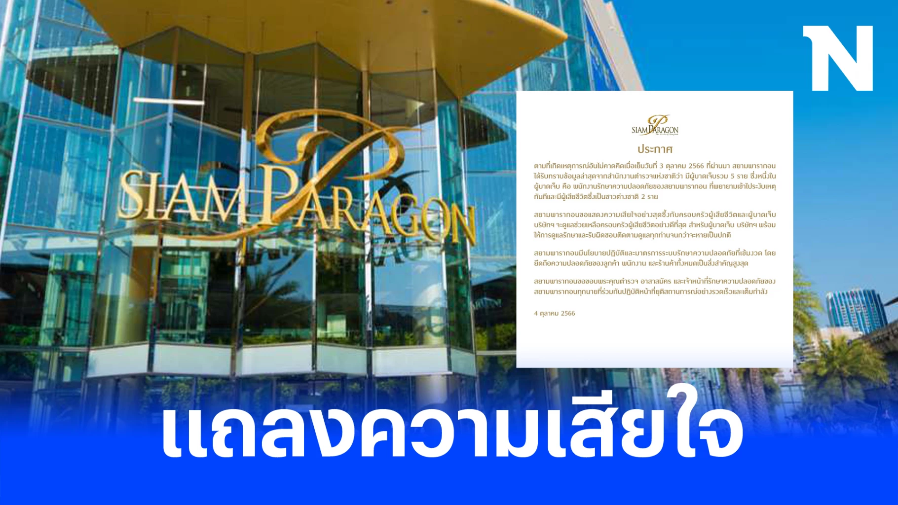 4 ตุลาคม 2566 สยามพารากอน ออกแถลงการณ์ถึงเหตุกราดยิงในห้างเย็นวานนี้ ระบุว่า “ตามที่เกิดเหตุการณ์อันไม่คาดคิดเมื่อเย็นวันที่ 3 ตุลาคม 2566 ที่ผ่านมา สยามพารากอนได้รับทราบข้อมูลล่าสุดจากสำนักงานตำรวจแห่งชาติว่า มีผู้บาดเจ็บรวม 5 ราย ซึ่งหนึ่งในผู้บาดเจ็บ คือ พนักงานรักษาความปลอดภัยของสยามพารากอน ที่พยายามเข้าไประงับเหตุทันที และมีผู้เสียชีวิตซึ่งเป็นชาวต่างชาติ 2 ราย