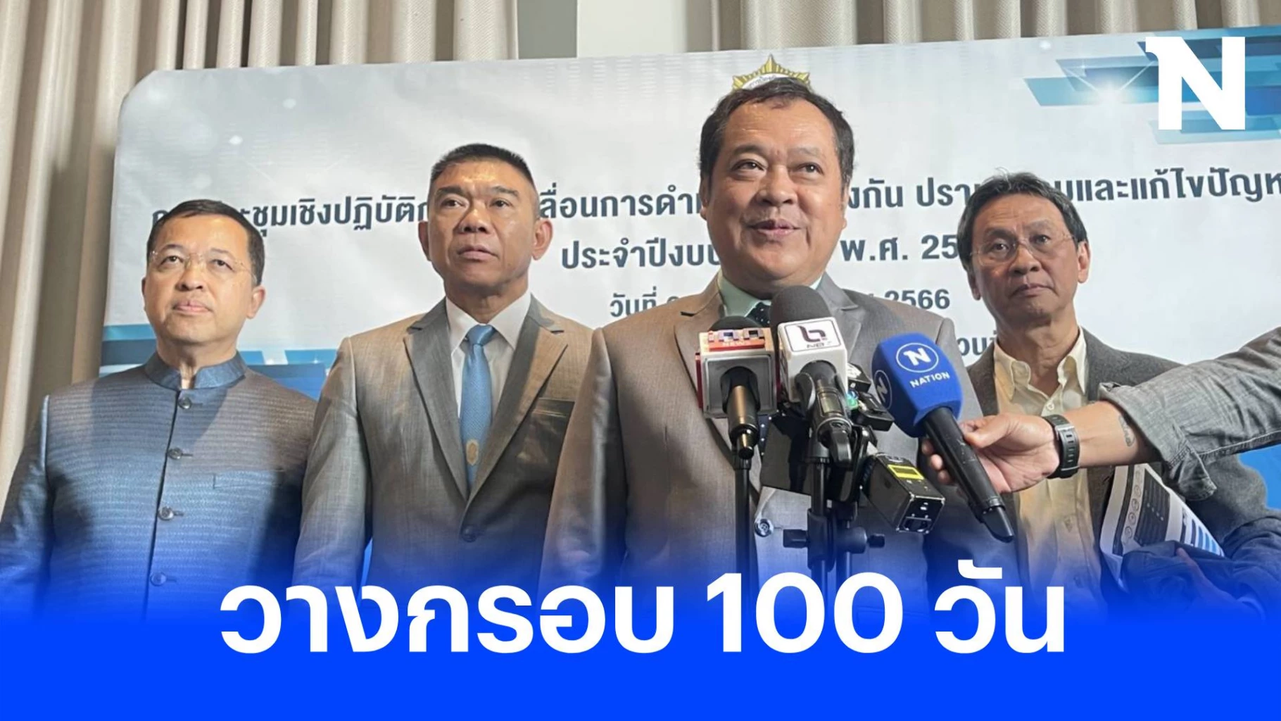 โดยแนวทางที่ได้จากการสัมมนาในวันนี้ จะแปลงไปสู่การปฏิบัติให้เห็นผลเป็นรูปธรรมใน 100 วันแรก โดยเริ่มตั้งแต่วันที่ 1 ธันวาคมนี้เป็นต้นไป ประกอบด้วย 3 นโยบายคือ การสกัดกั้นยาเสพติดเข้าประเทศไทย โดยจะมีการตั้งศูนย์บัญชาการสกัดกั้นปราบปรามยาเสพติด เพื่อสกัดกั้นและยับยั้งการลำเลียง ยาเสพติดเข้าประเทศ รวมถึงการนำเข้าสารตั้งต้น และเคมีภัณฑ์ต่างๆ เข้าประเทศไทย