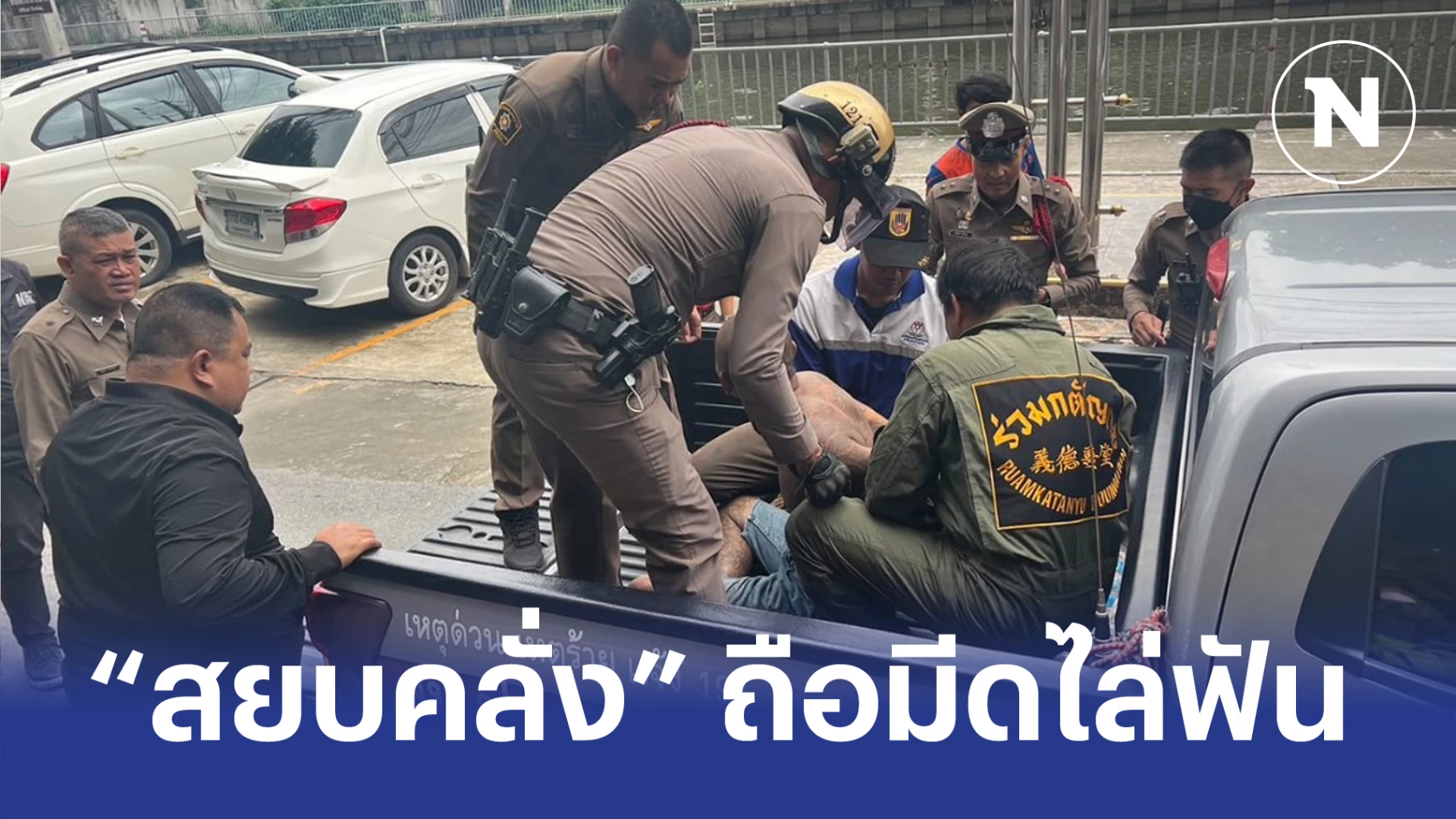 ต่อมาเจ้าหน้าที่กู้ภัยประสานกับตำรวจ สน.ประเวศ ให้เข้ามาระงับเหตุ แต่ชายคนก่อเหตุมีอาการคลุ้มคลั่งหนักมาก ถือมีดแกว่งไปแกว่งมา ก่อนจะวิ่งฝ่าตำรวจแล้วข้ามถนนใหญ่ไปหลายเลน
