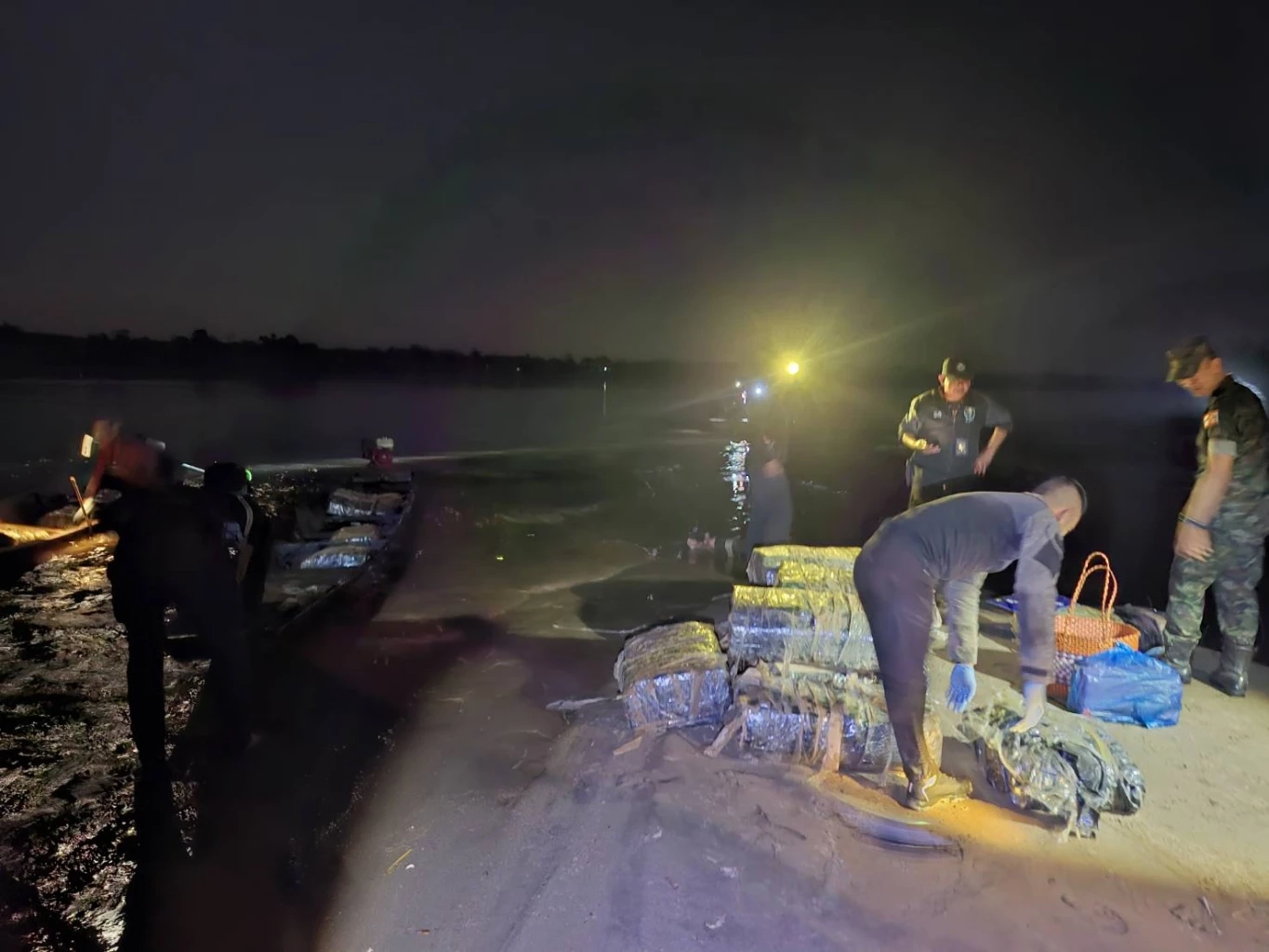 พร้อมตรวจยึดยาเสพติดประเภท 1 (ยาไอซ์) จำนวน 16 กระสอบ น้ำหนักรวม 658 กิโลกรัม ยาบ้า 58 มัด จำนวนประมาณ 116,000 เม็ด วางอยู่ในพื้นที่ริมตลิ่งแม่น้ำโขงบ้านแพงใต้
