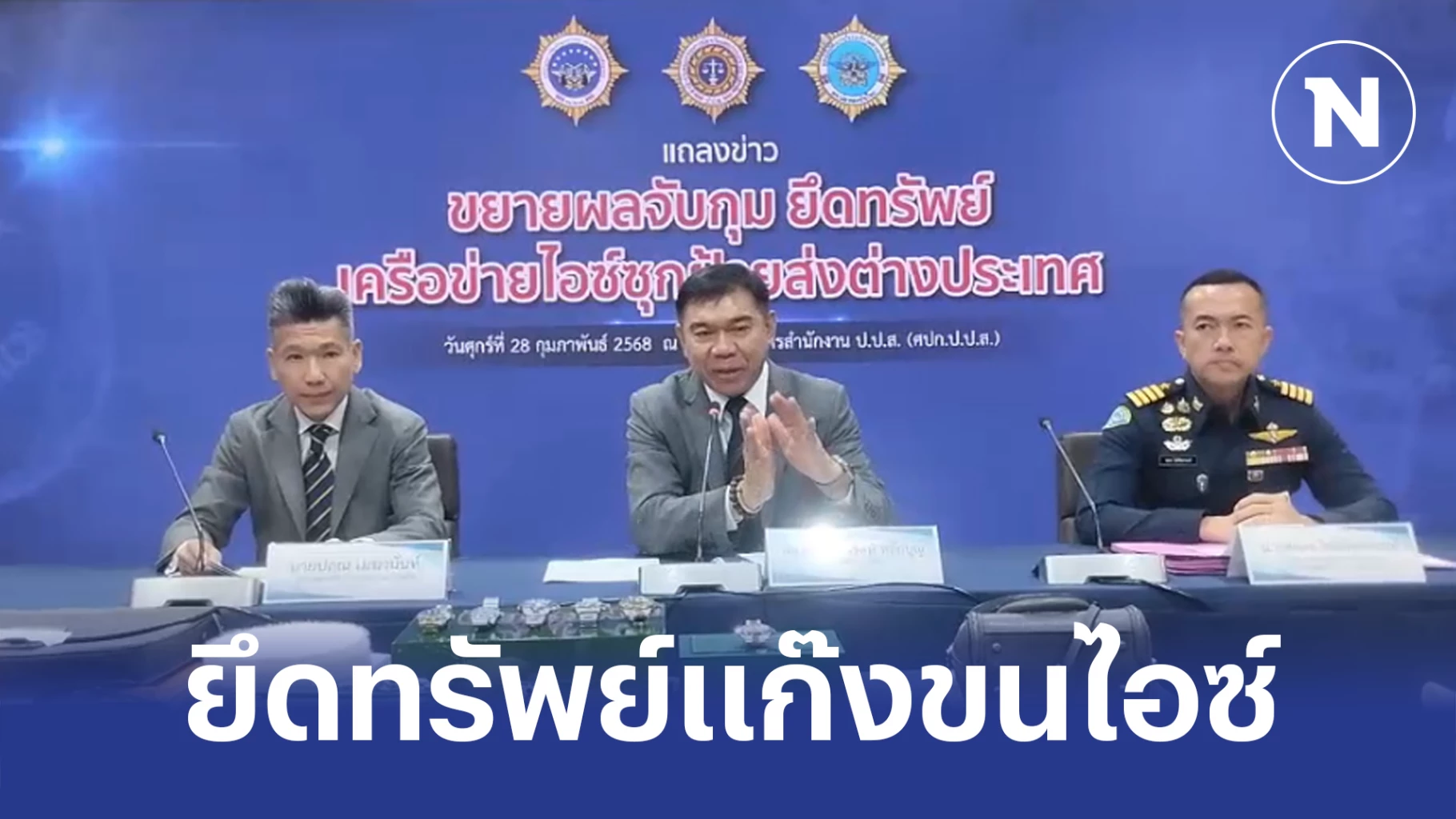 28 กุมภาพันธ์ 2568 ที่สำนักงานป้องกันและปราบปรามยาเสพติด หรือ ป.ป.ส. (ดินแดง) พลตำรวจเอก ภานุรัตน์ หลักบุญ เลขาธิการ ป.ป.ส. และเจ้าหน้าที่ที่เกี่ยวข้อง ร่วมแถลงการณ์ขยายผลจับกุม นายปัญกิตต์ (สงวนนามสกุล) ผู้ต้องหาระดับสั่งการในเครือข่ายส่งไอซ์ข้ามชาติ ใช้ไทยเป็นที่พัก เตรียมส่งต่อปลายทางประเทศที่ 3 พร้อมยึดทรัพย์กว่า 23 ล้านบาทไว้ตรวจสอบ
