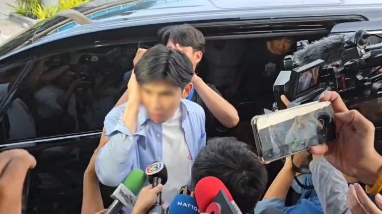 โดย นายพีช เดินเข้าไปในห้องพนักงานสอบสวนทันที ขึ้นทางบันไดด้านข้างอาคาร พยายามที่จะเลี่ยงให้สัมภาษณ์ต่อสื่อมวลชน ก่อนที่นายกเบี้ยว ที่เดินตามหลังมาให้สัมภาษณ์กับสื่อมวลชน บอกว่า วันนี้พาลูกชายเดินทางเข้ามารับทราบข้อหาขับรถโดยประมาท ตามพระราชบัญญัติการจราจรทางบก และในส่วนของรถ BMW ยังไม่ได้เอามาด้วยในวันนี้ แต่เตรียมที่จะนำเข้ามามอบให้กับตำรวจทางหลวงในวันพรุ่งนี้(19เม.ย.68) เนื่องจากรถอยู่อีกที่หนึ่ง และยังยืนยันว่าทะเบียนป้ายแดง เป็นป้ายจริงและเตรียมที่จะขอป้ายทะเบียนให้ตรงกับเลขวันเกิด
