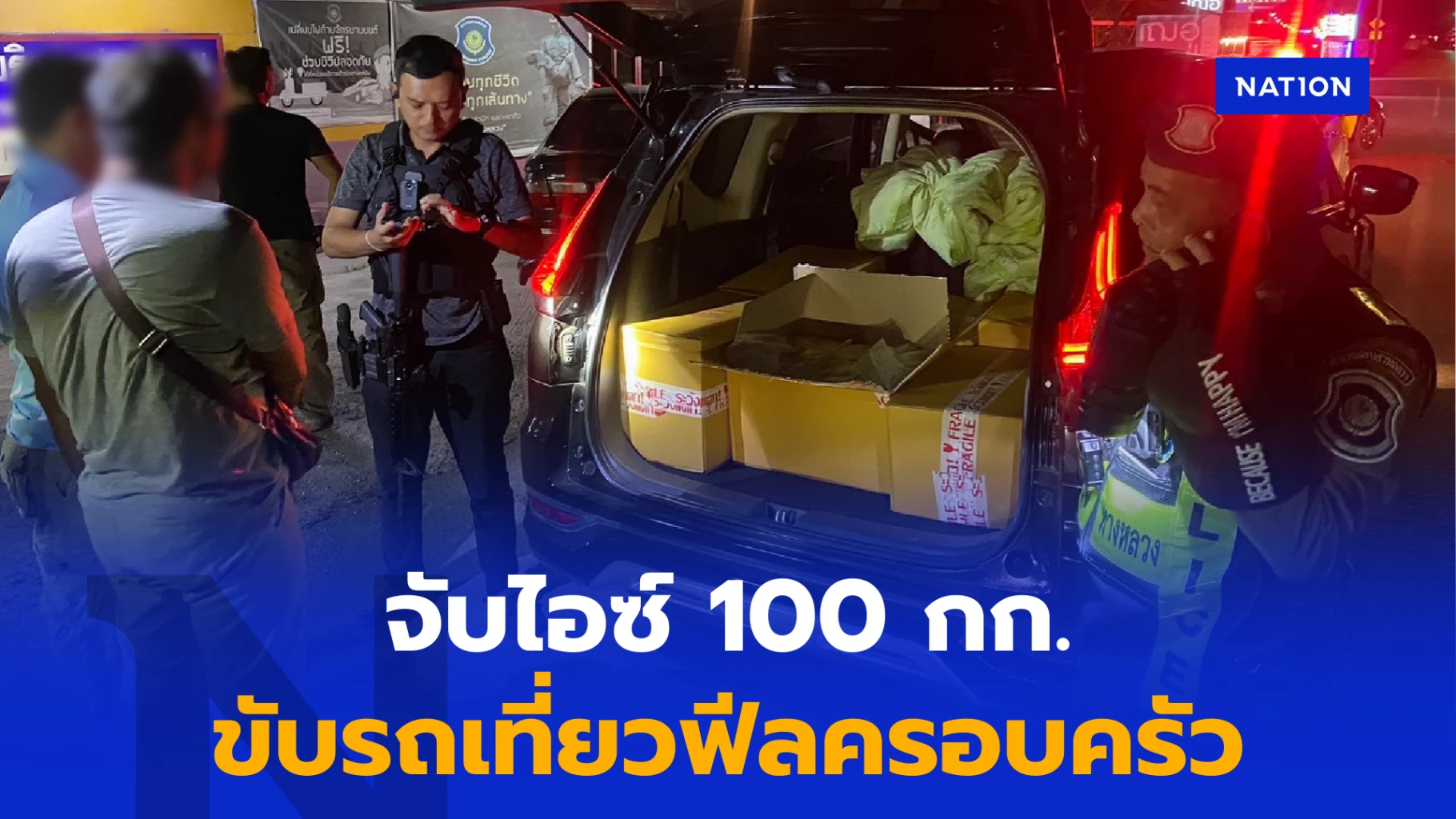 ผลการตรวจสอบ ภายในรถยนต์ทะเบียน กรุงเทพมหานคร พบกล่องพัสดุ จำนวน 6 กล่อง เมื่อเปิดออกมาพบเป็น ยาเสพติดให้โทษประเภท 1 (ไอซ์หรือเมทแอมเฟตามีน) บรรจุอยู่ในกล่องพัสดุ ห่อด้วยพลาสติกสีเงินและสีทอง มีรูปดาวสีทอง 5 ดวง ซีลปากถุงด้วยพลาสใสอีกชั้นหนึ่ง (น้ำหนักก้อนละประมาณ 1 กิโลกรัม) จำนวน 100 ก้อน น้ำหนักรวมประมาณ 100 กิโลกรัม