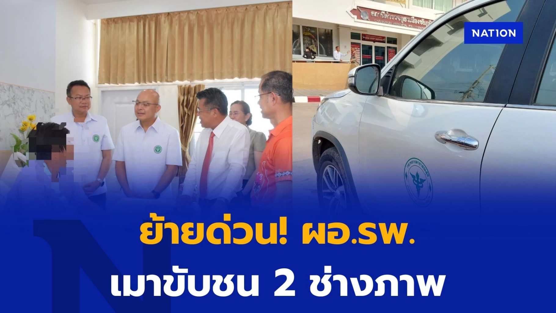 1 พฤษภาคม 2568 จากอุบัติเหตุ ผอ.โรงพยาบาลแห่งหนึ่ง ใน จ.ชัยภูมิ ขับรถฟอร์จูนเนอร์ สีขาว ไปชนช่างภาพทีวี 2 คน ได้รับบาดเจ็บสาหัส โดยพบว่า ผอ.โรงพยาบาล เมาแล้วขับ ผลตรวจวัดแอลกอฮอล์ 119 มิลลิกรัมเปอร์เซ็นต์ เหตุเกิดบริเวณหน้าร้านอาหารแห่งหนึ่ง ต.ในเมือง อ.เมือง จ.ชัยภูมิ เมื่อกลางดึกวันที่ 30 เมษายน 2568