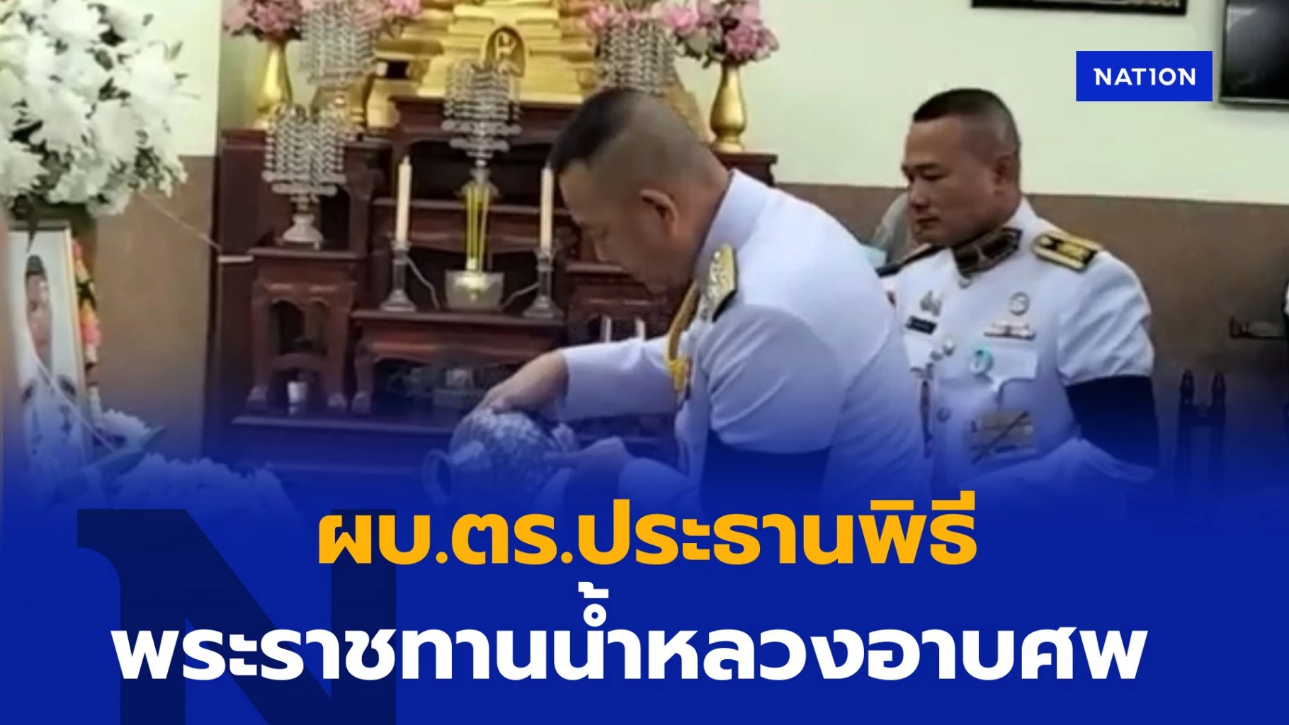 เวลา 16.45 น. เจ้าหน้าที่สำนักพระราชวัง อัญเชิญน้ำหลวงอาบศพพระราชทาน และเวลา 17.00น. พล.ต.อ.กิตติ์รัฐ พันธุ์เพ็ชร์ ผู้บัญชาการตำรวจแห่งชาติ(ผบ.ตร.) เป็นประธานในพิธีพระราชทานน้ำหลวงอาบศพ