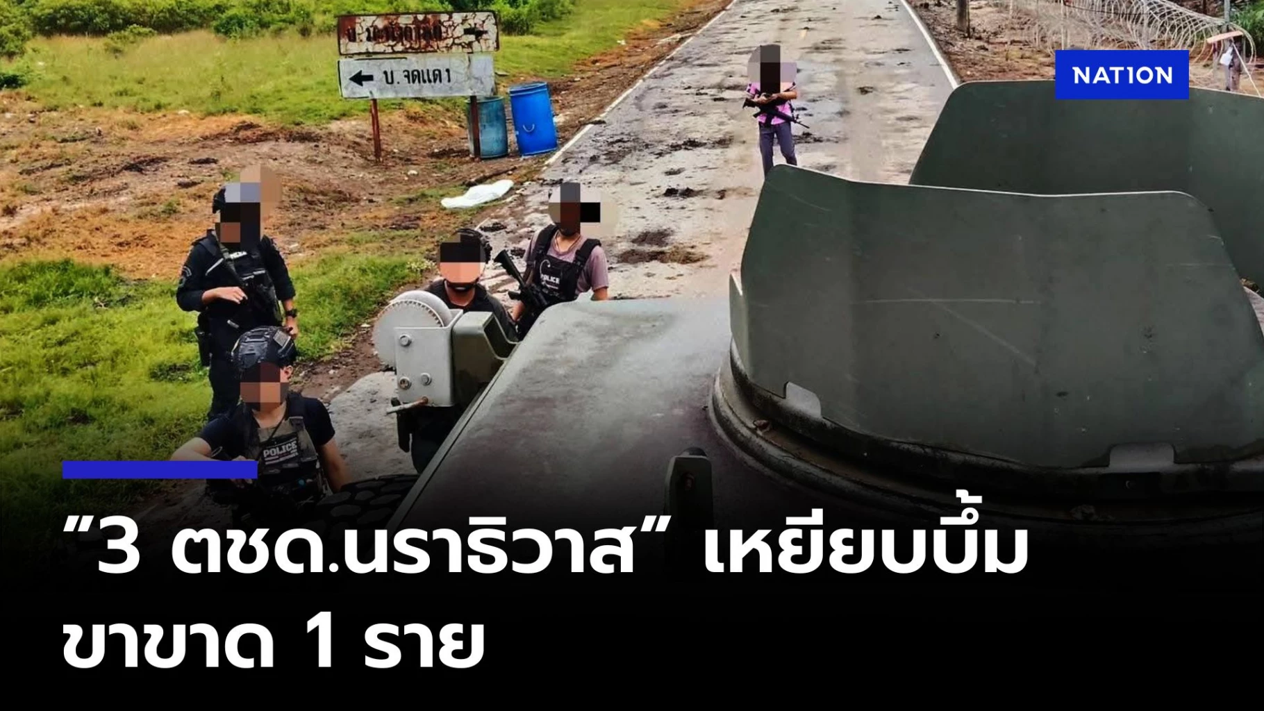 แรงระเบิดทำให้ ร.ต.ต.เจียระพงษ์ เจริญ ข้อเท้าซ้ายขาด อาการสาหัส ส.ต.ท.ธนบัตร ทองเกียว เล็กน้อยและ ร.ต.ต.อดิเทพ รสมาลี เล็กน้อย ถูกนำส่งโรงพยาบาลนราธิวาสราชนครินทร์