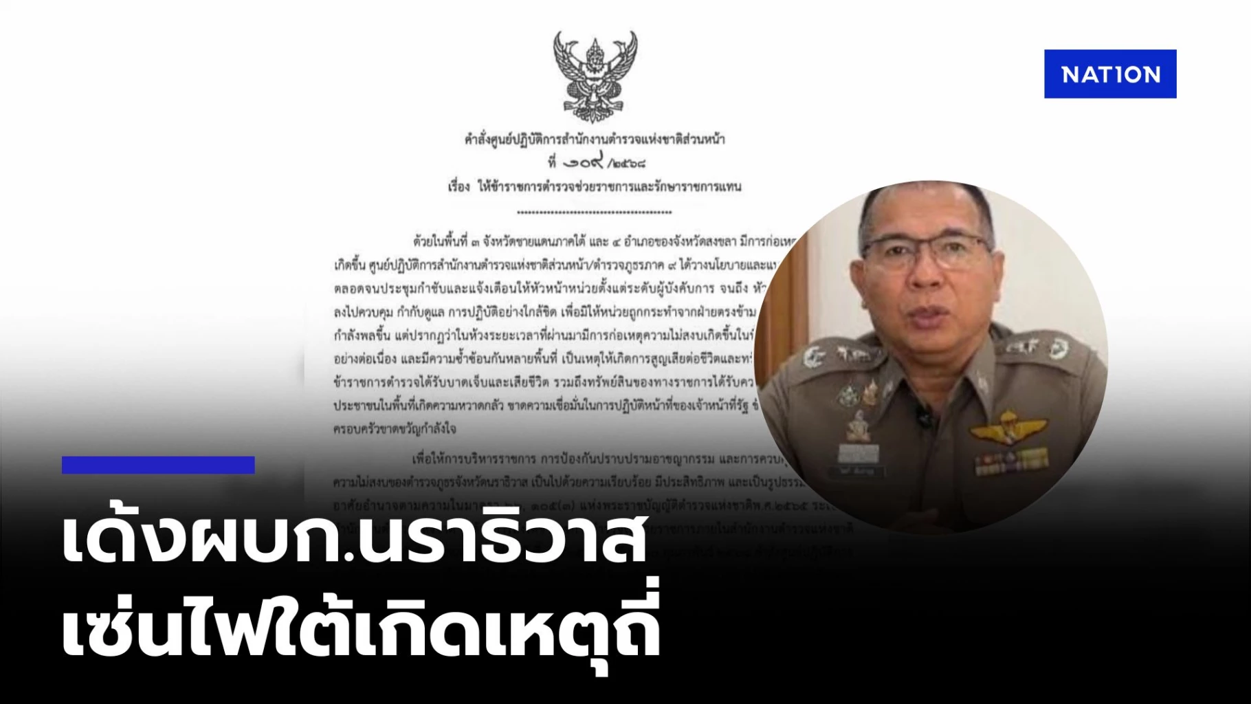 โดยระบุในหนังสือคำสั่ง ด้วยในพื้นที่ 3 จังหวัดชายแดนภาคใต้ และ 4 อำเภอ ของ จ.สงขลา มีการก่อเหตุความไม่สงบเกิดขึ้น ศูนย์ปฏิบัติการสำนักงานตำรวจแห่ชาติส่วนหน้า ตำรวจภูธร ภาค 9 ได้วางนโยบายและแนวทางการปฏิบัติตลอดจนประชุมกำชับ และแจ้งเตือนให้หัวหน้าหน่วย ตั้งแต่ระดับผู้บังคับการ จนถึงหัวหน้าสถานีตำรวจไปควบคุม แต่ปรากฏว่าในห้วงระยะเวลาที่ผ่านมา มีการก่อเหตุความไม่สงบเกิดขึ้นในพื้นที่ จ.นราธิวาส อย่างต่อเนื่อง